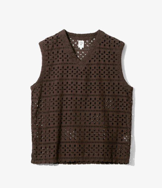 Sleeveless V Neck Shirt - Cutwork Embroidery