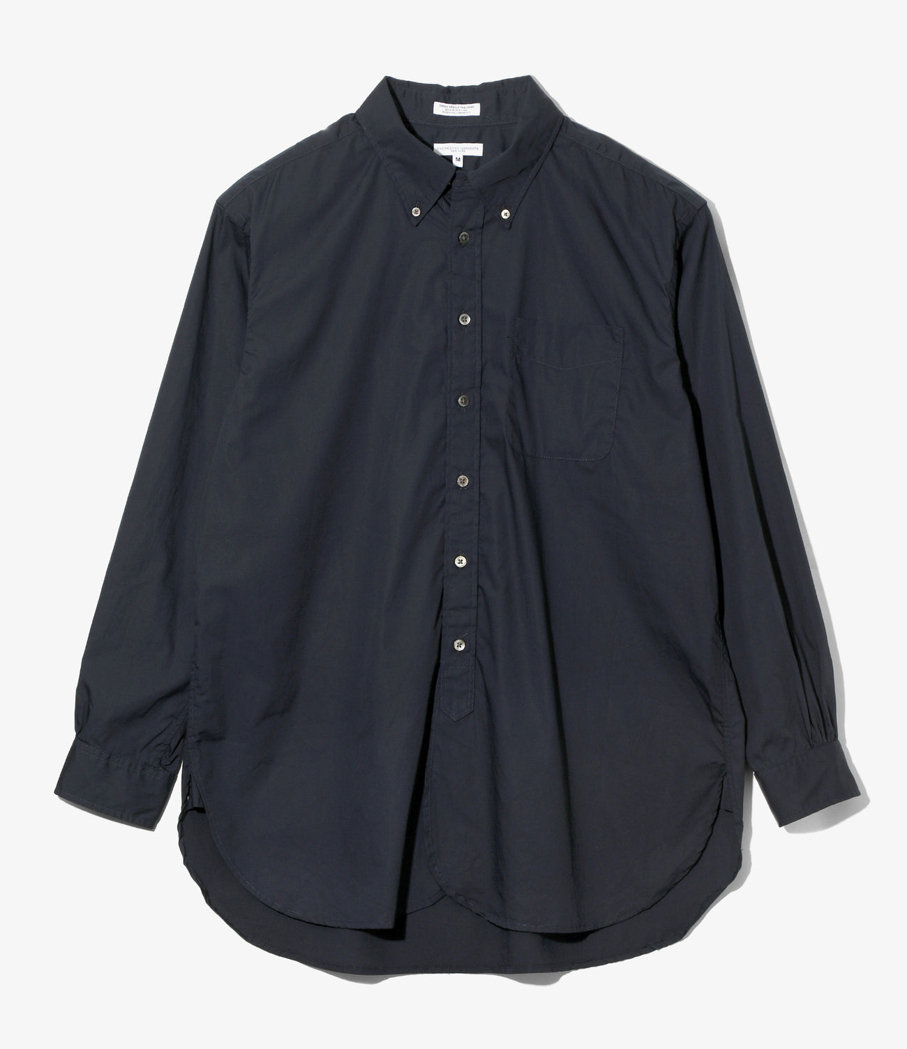 19世紀に作られたドレスシャツをモチーフにデザインされた、〈ENGINEERED GARMENTS〉を代表する定番ボタンダウンシャツ。重なり合うようにラウンドした裾のデザインや、脇下のガゼット、深く取られたサイドスリットなど、クラシックなドレスシャツに見られるディテールが多数取り入れられています。縫製は手間と時間のかかるシングルニードルで行われており、縫い目の美しさと高い耐久性を兼ね備えています。シルキーな光沢感のブロードクロスを使用し、あえて洗いをかけることで独特の表情を引き出しています。