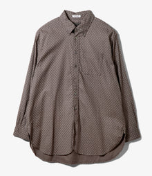 19世紀に作られたドレスシャツをモチーフにデザインされた〈ENGINEERED GARMENTS〉を代表する定番アイテム。重なり合うようにラウンドした裾のデザインや、脇下のガゼット、深く取られたサイドスリットなど、特徴的なディテールが多数取り入れられています。縫製は手間と時間のかかるシングルニードルで行われており、縫い目の美しさと高い耐久性を兼ね備えています。”MUSIC”のプリントを取り入れた、今期のブランドテーマを反映する一着です。
