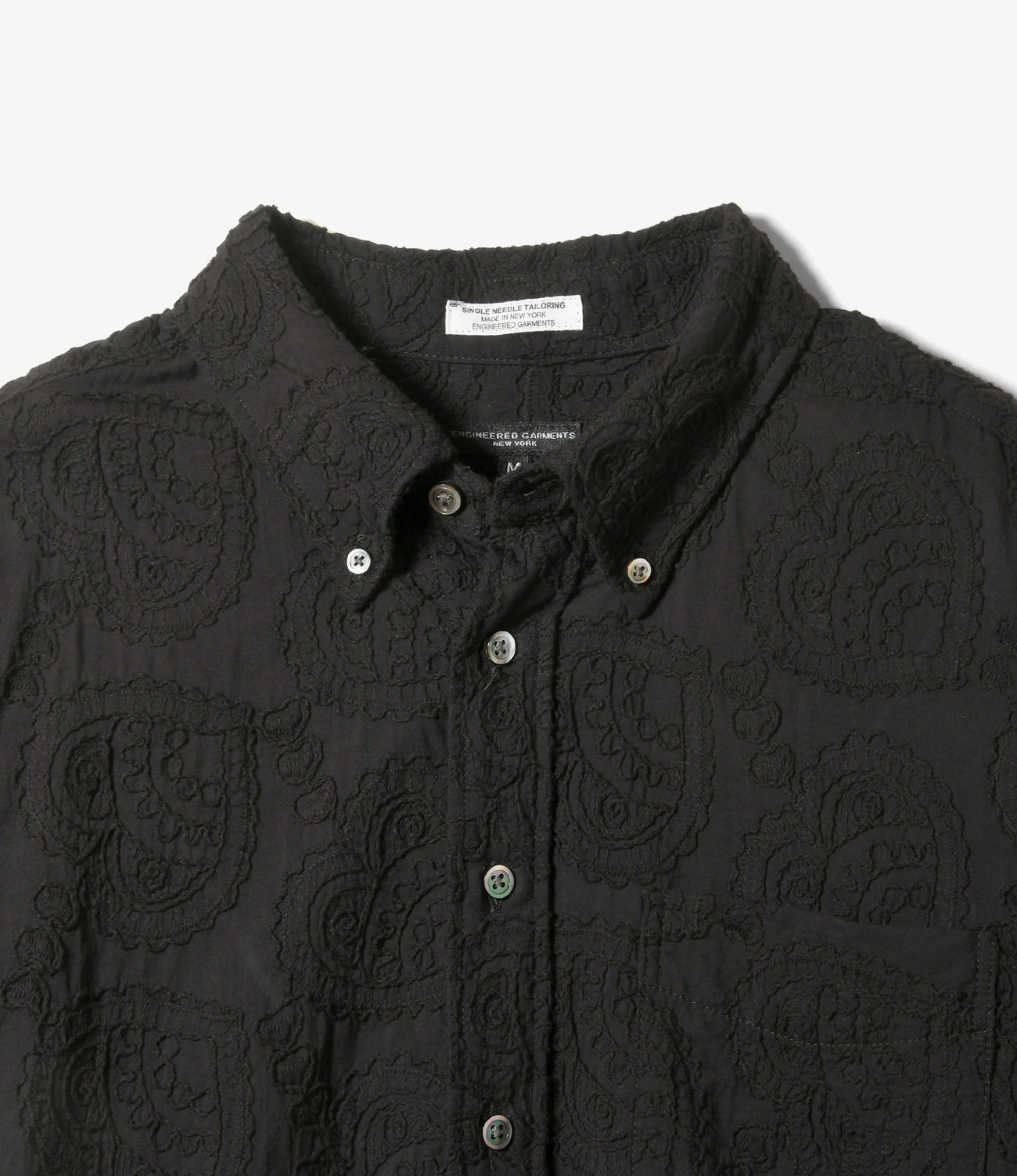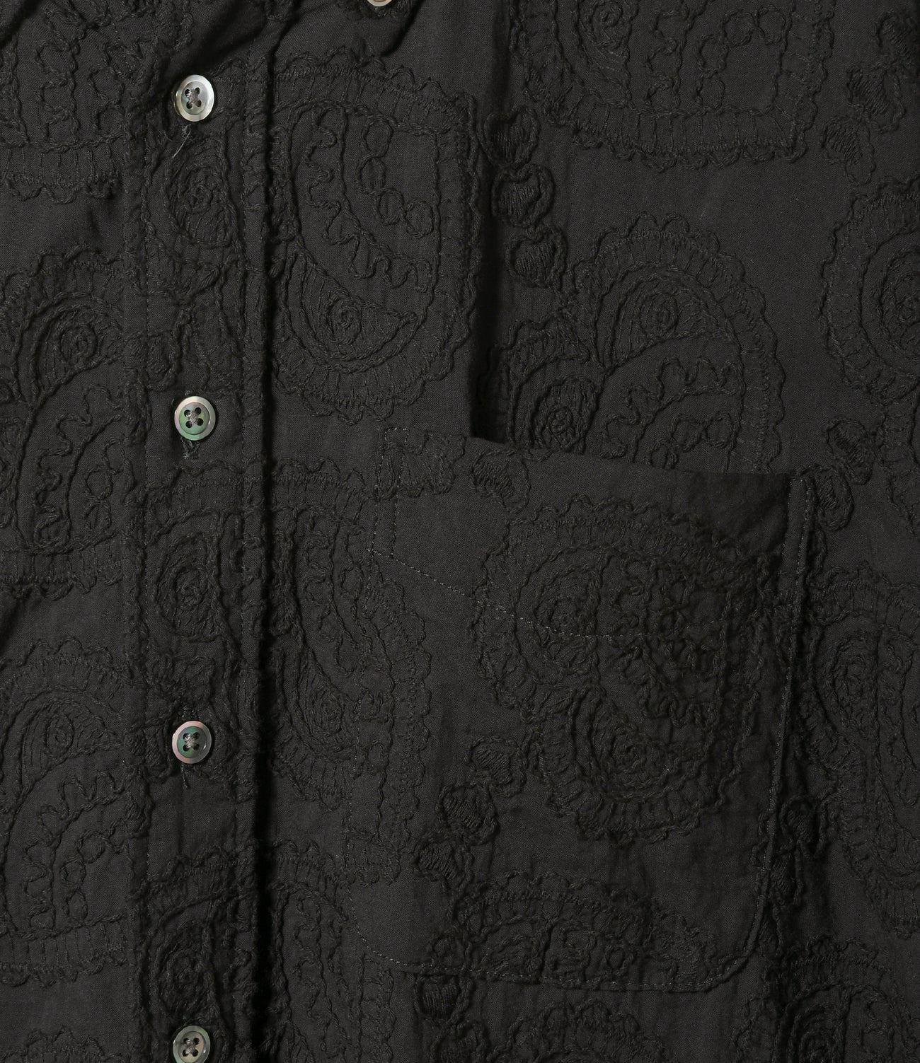 19世紀に作られたドレスシャツをモチーフにデザインされた〈ENGINEERED GARMENTS〉を代表する定番アイテム。重なり合うようにラウンドした裾のデザインや、脇下のガゼット、深く取られたサイドスリットなど、特徴的なディテールが多数取り入れられています。縫製は手間と時間のかかるシングルニードルで行われており、縫い目の美しさと高い耐久性を兼ね備えています。同色で大胆に刺繍されたペイズリー柄がシックで華やかなファブリックです。