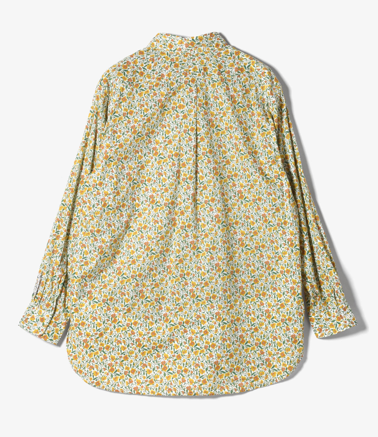 19世紀に作られたドレスシャツをモチーフにデザインされた、〈ENGINEERED GARMENTS〉を代表する定番ボタンダウンシャツ。重なり合うようにラウンドした裾のデザインや、脇下のガゼット、深く取られたサイドスリットなど、クラシックなドレスシャツに見られるディテールが多数取り入れられています。縫製は手間と時間のかかるシングルニードルで行われており、縫い目の美しさと高い耐久性を兼ね備えています。なめらかで柔らかいコットンローンの生地に小花柄をあしらいナチュラルな印象に仕上げました。