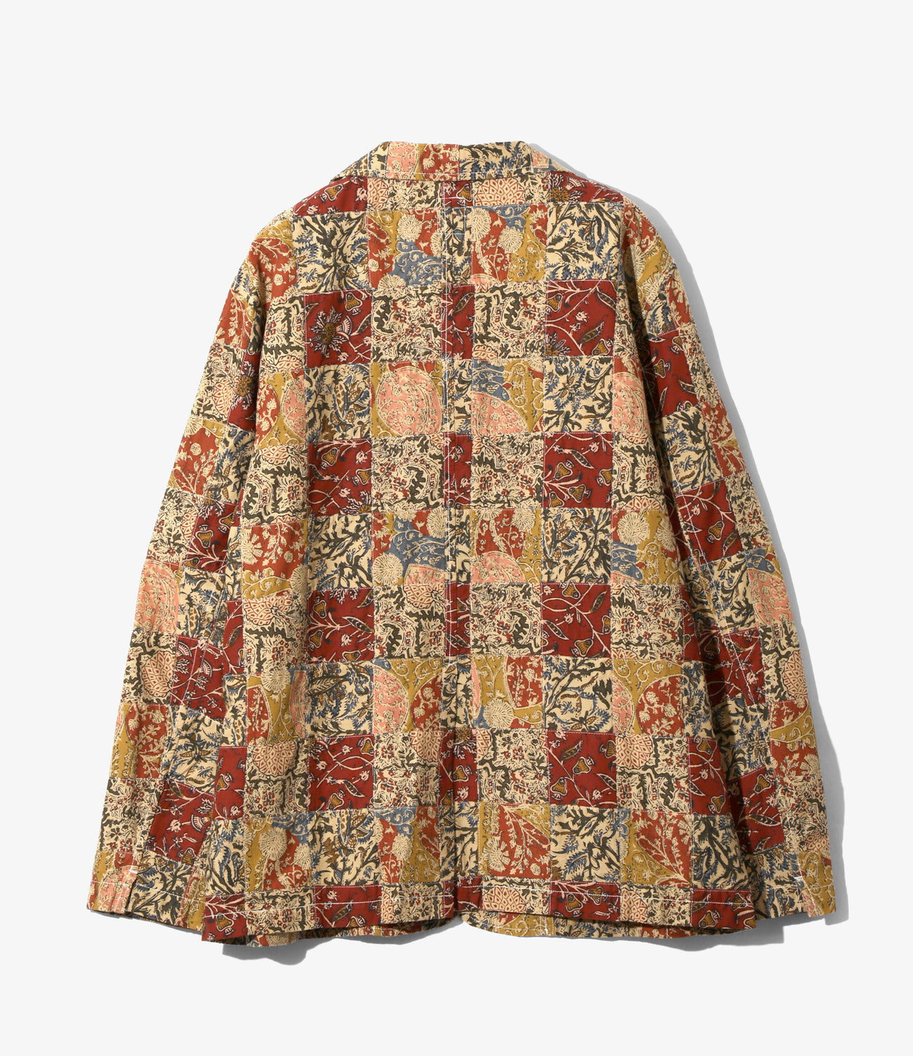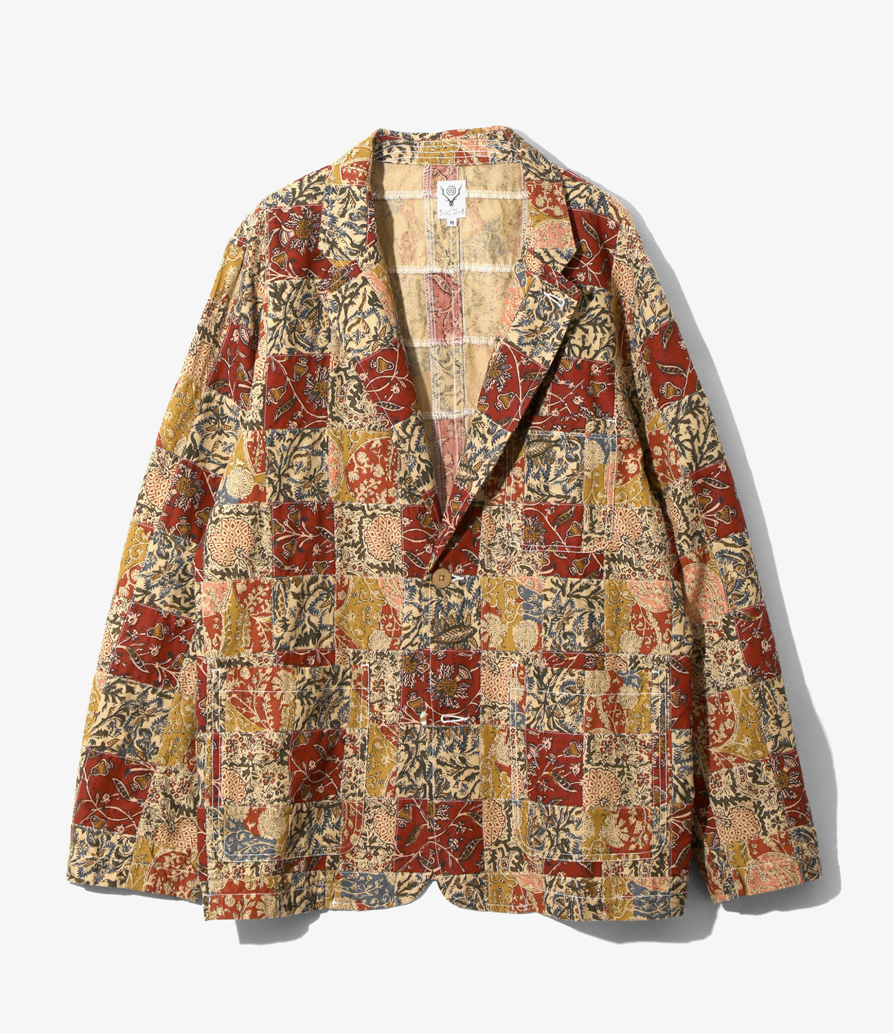 今シーズン登場の新型2ボタンジャケット。シャツジャケット感覚で気軽に羽織れる、リラックス感のあるシルエットで、ロールアップなどカジュアルな着こなしにも対応します。エスニックなムードを漂わせるプリントを施したインドファブリックのパッチワークで、個性的かつ表情豊かな一着に仕上げました。薄手のコットン100%素材を使用し、通気性がよく快適な着心地も魅力です。