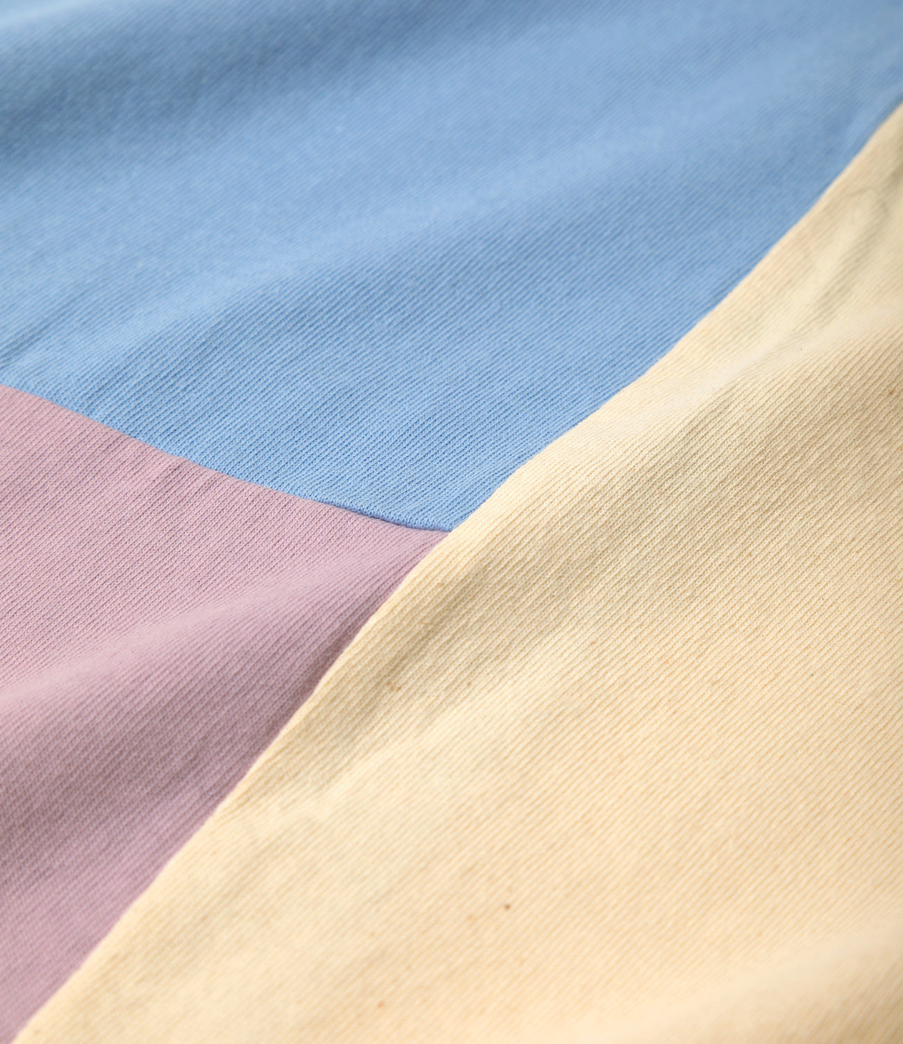 S25シーズンに好評を博した3 Color Block Tee。〈TS(S)〉で展開しているTシャツをベースに、胸ポケットとパピヨン刺繍を加えた別注デザインです。カラーは、今回のコラボレーションで展開しているデジタルカモおよびサマーコーデュロイのアイテムからピックアップ。素材には、アメリカ古着にも多く見られる空紡糸(オープンエンドヤーン)を使用し、タフでドライな質感に仕上げています。