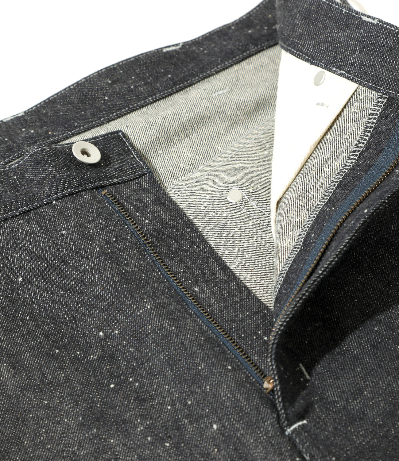ジーンズの定番ディテールを踏襲した5ポケット仕様のパンツ。フロントのコインポケットを含む5つのポケットを備え長く履くほどに風合いを増す表情豊かな仕上がりです。13ozのデニムネップを使用した無骨でヴィンテージ感のある一着です。