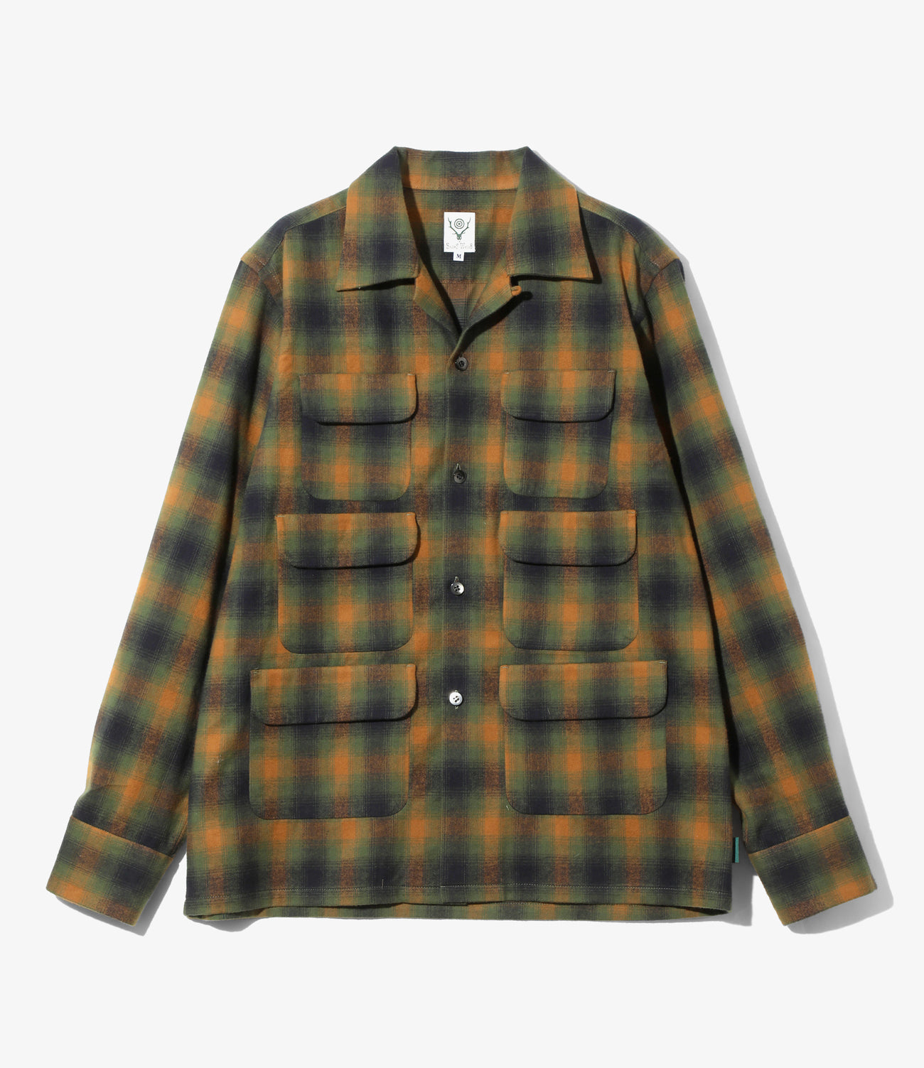 開放感のあるオープンカラーとフロントの6つのパッチポケットが個性的な6ポケットシャツ。〈SOUTH2 WEST8〉では定番として展開される人気アイテムで、毎シーズンさまざまなファブリックでリリースされています。