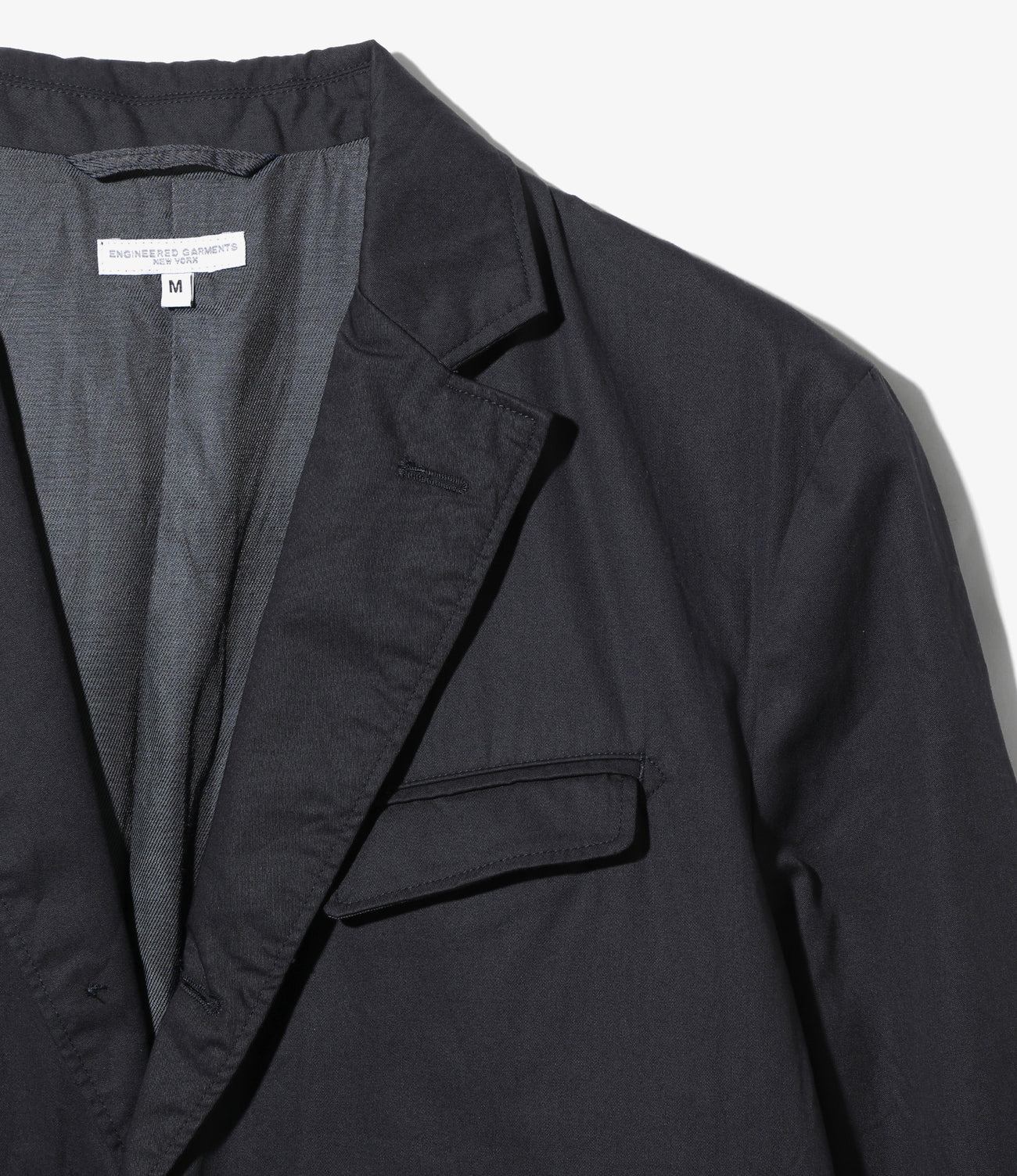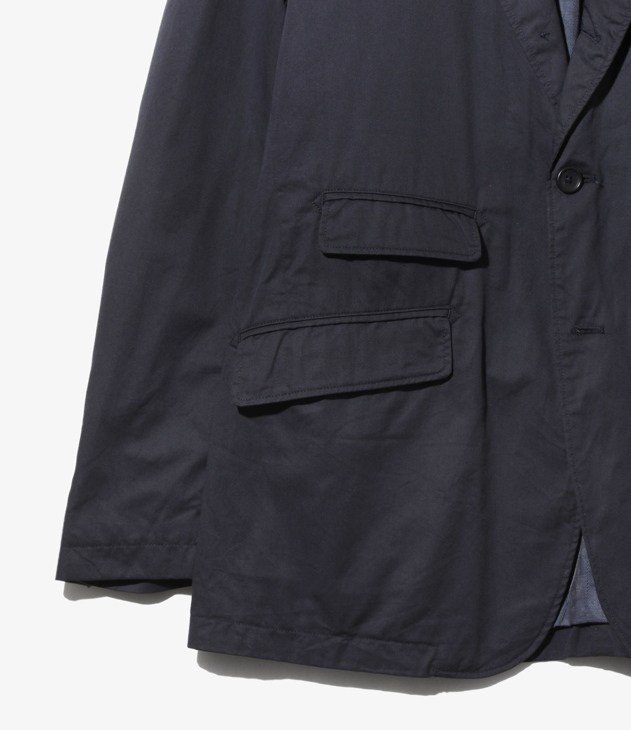 〈ENGINEERED GARMENTS〉の定番で人気の高いアンドーバージャケット。3ボタンにチェンジポケットなどのトラディショナルな仕様で根強い人気を誇るアイテムです。フロントにはダーツが取られており、身体に沿って自然にシェイプしたシルエットが特徴で、バックはサイドベンツの仕様。ポケットはやや内側に傾けてセットされ、全体的に引き締まった表情となっています。製品には洗いがかけられており、程よく力の抜けたムードが漂う仕上がり。高密度に織り上げることで滑らかな肌触りと品の良い光沢感を持ち、強度にも優れたハイカウントツイルを使用。