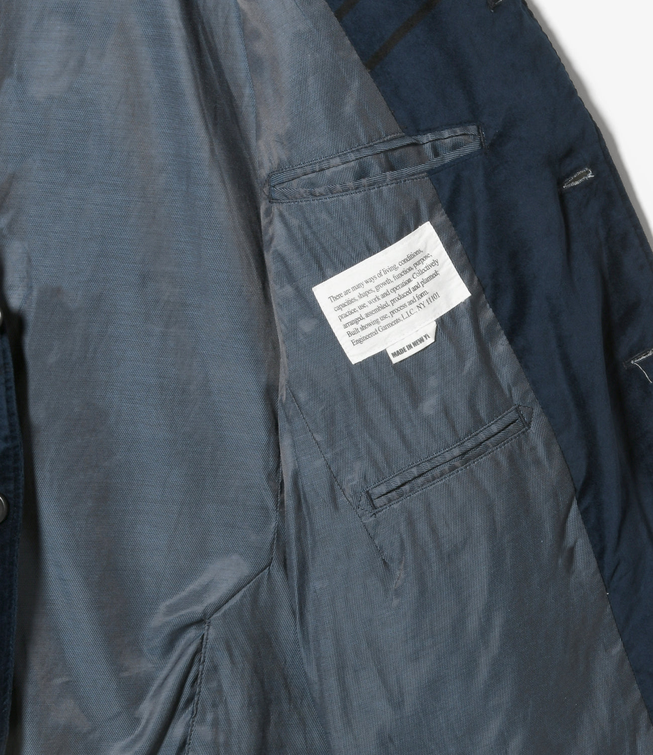〈ENGINEERED GARMENTS〉の定番で人気のアンドーバージャケット。3ボタンにチェンジポケットなどのトラディショナルな仕様で根強い人気を誇るアイテムです。フロントにはダーツが取られており、身体に沿って自然にシェイプしたシルエットが特徴。ポケットはやや内側に傾けてセットされ、全体的に引き締まった表情となっています。製品には洗いがかけられており、程よく力の抜けたムードが漂う仕上がりとなっています。