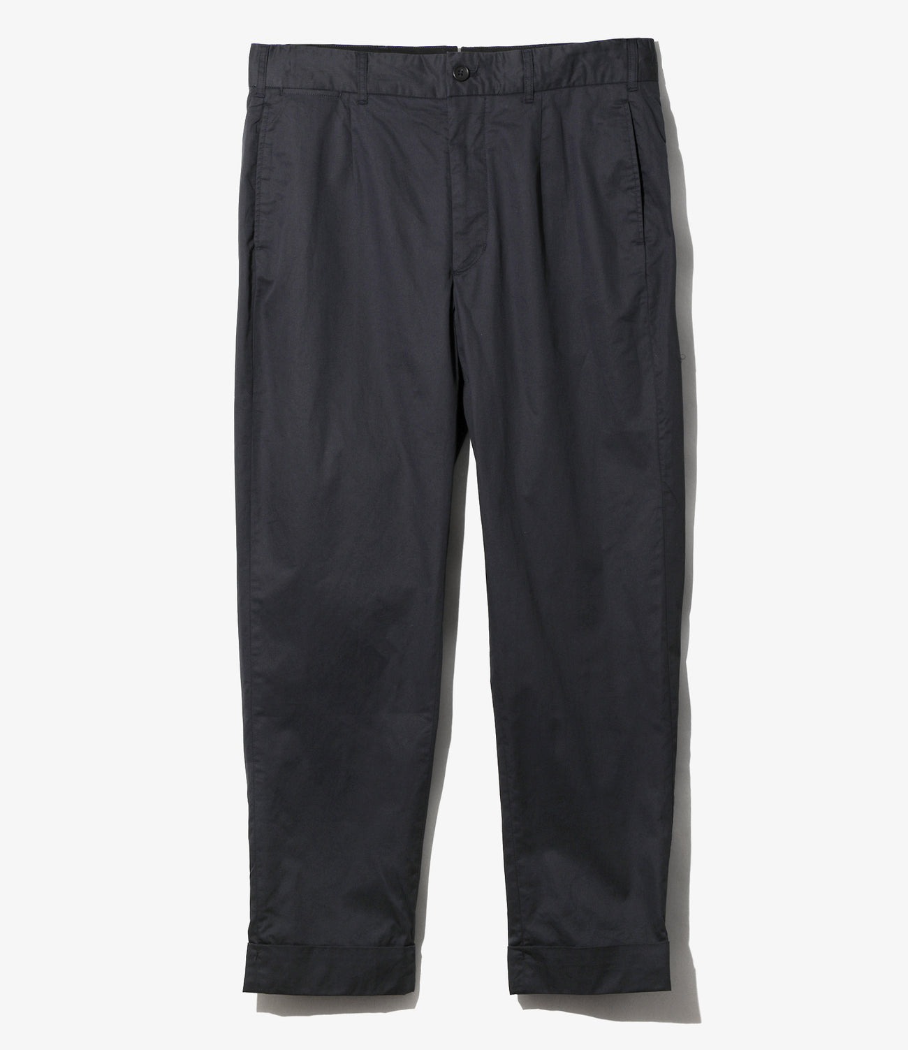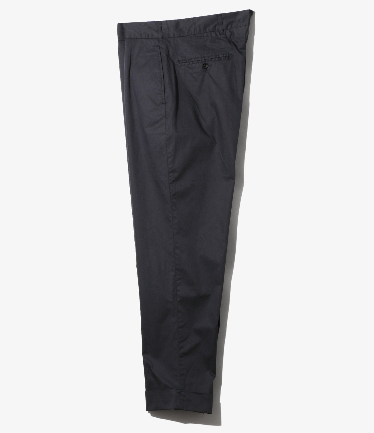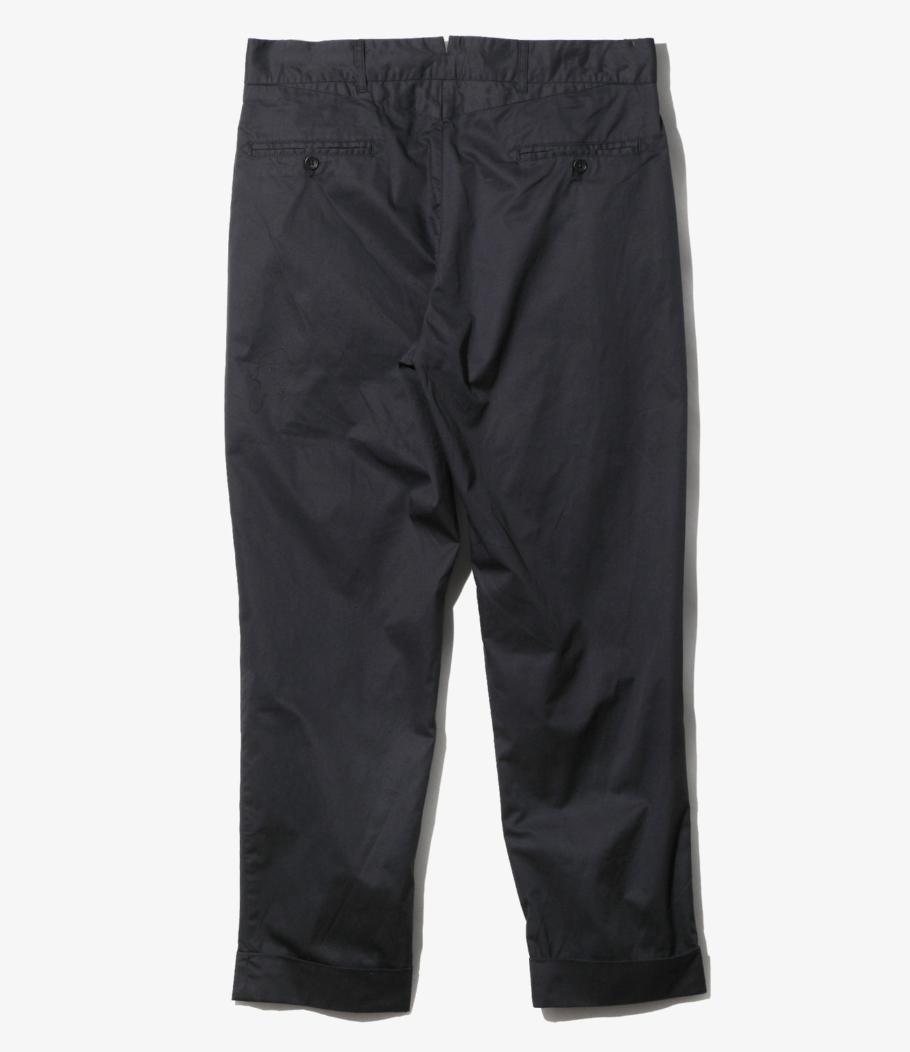 〈ENGINEERED GARMENTS〉のパンツのラインナップでも、最もシンプルかつベーシックなデザインのアンドーバーパンツ。クラシカルなトラウザーズのスタイルを踏襲した定番の一本です。ゆったりとした腰回りからテーパードの効いたシルエットが特徴的で、裾はダブルの仕上げが施されています。高密度に織り上げることで滑らかな肌触りと品の良い光沢感を持ち、強度にも優れたハイカウントツイルを使用。