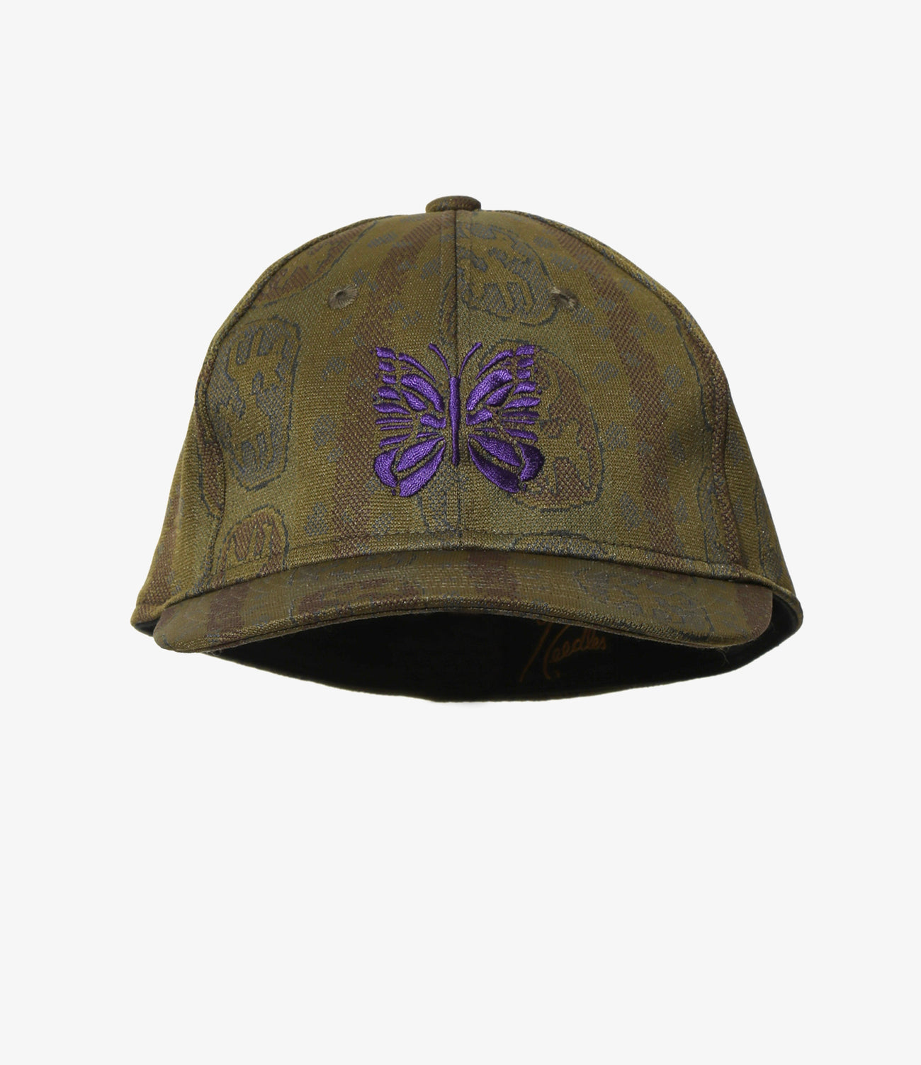 今シーズンのコレクションで採用されている、オリジナルのジャカード素材で制作されたベースボールキャップ。フロント中央にはパピヨン(蝶)の刺繍がアクセントとして施されています。