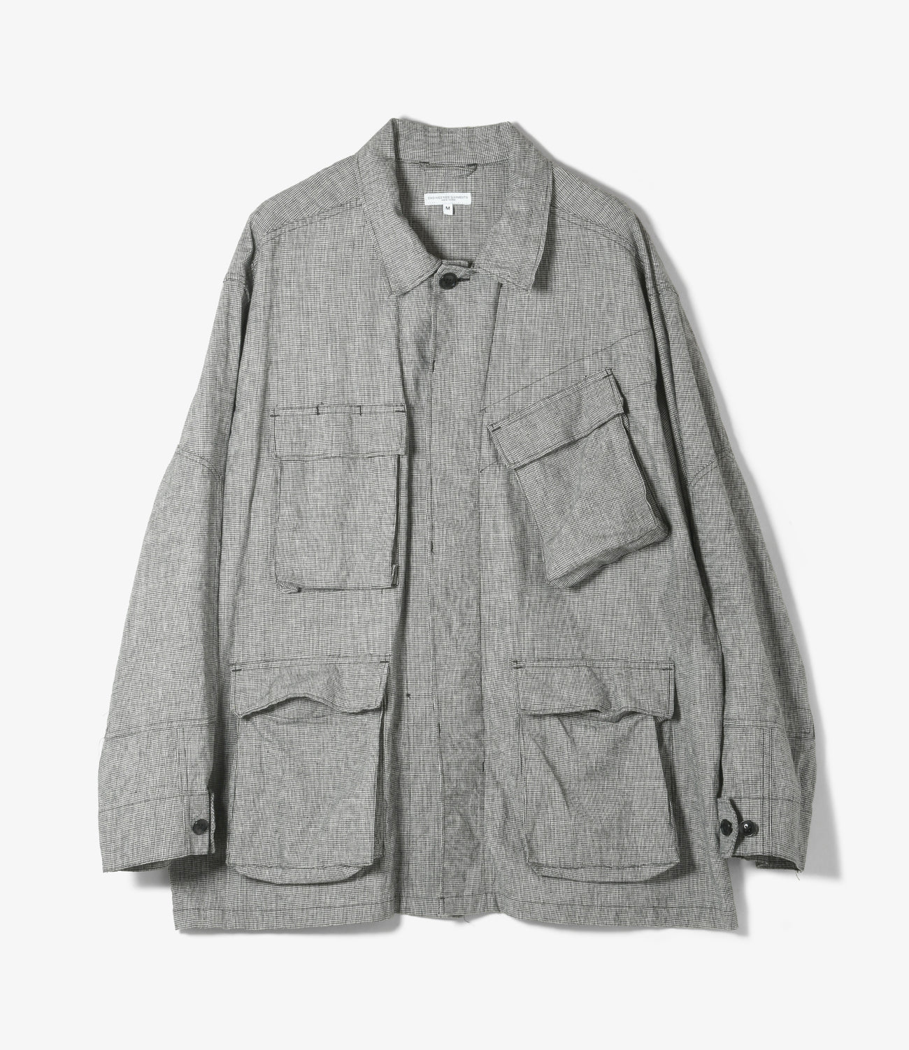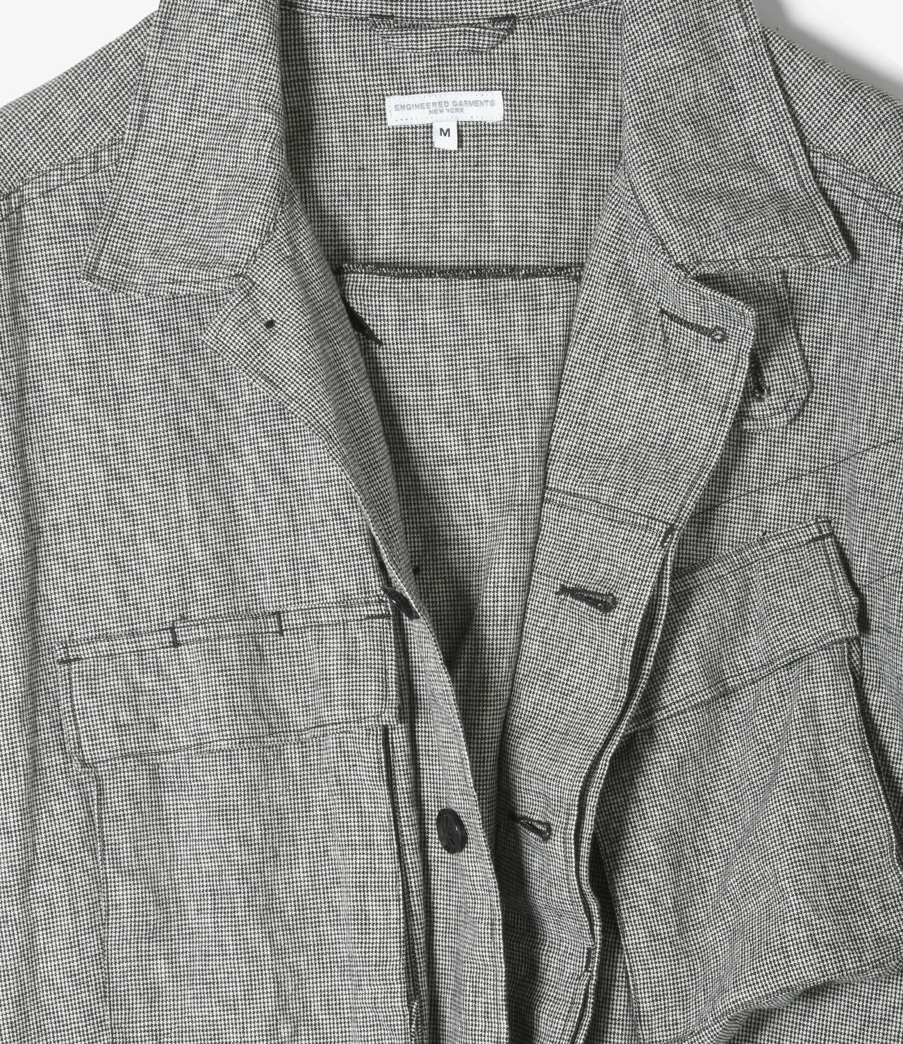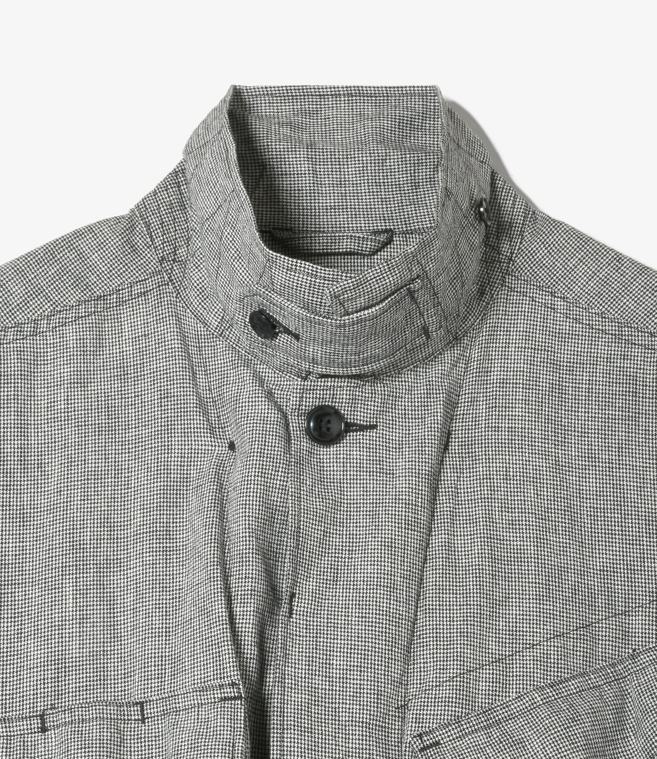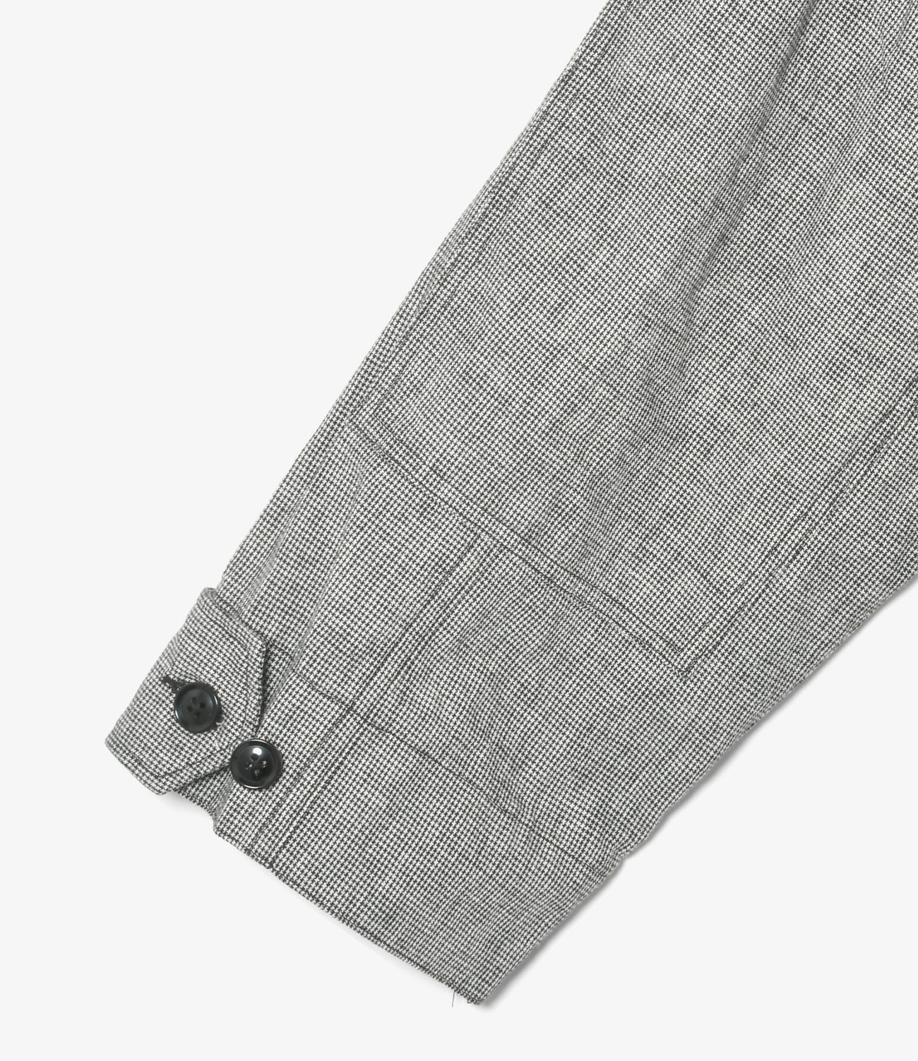 ミリタリージャケットらしく、無骨なデザインと大きな収納力や機能性を兼ね備えたBDUジャケットがリリースされています。幅広いスタイルにマッチするU.S. ARMYのアイテムをベースに、チンストラップや片方だけ斜めに傾いたポケットデザインなど〈EG〉らしい遊び心のあるディテールをプラス。コットンリネンのハウンドトゥース柄を採用しスタイリングの幅も広がります。