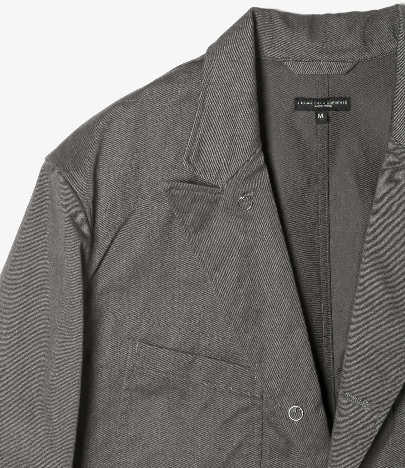 ピークドラペルと4パッチポケットのデザインに、ワークウェアの無骨なディテールが加わった〈ENGINEERED GARMENTS〉の定番ジャケット。負荷のかかりやすい肩やポケットの裏側に施された補強布と、それらのステッチがタフな印象を与える人気のアイテムです。フロントボタンはヴィンテージのワークウェアなどに見られるチェンジボタン仕様となっています。