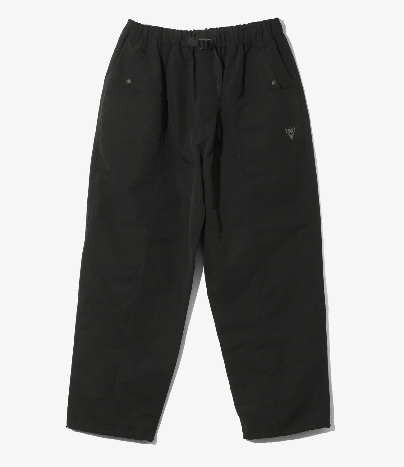 リラックス感のあるワイドシルエットが特徴的な定番のセンターシームパンツ。ウエストはスポーティなウェビングベルト仕様です。両脚センターの3本ステッチのシーム、重なるように取り付けられたサイドポケットなど、印象的なディテールを多数備えています。裾にはドローコードも取りつけられており、パンツのレングスをアレンジした着こなしも可能です。今シーズンはクラシックなアウトドアウェアのムード漂うコットン/ナイロンの混紡素材でのリリースです。
