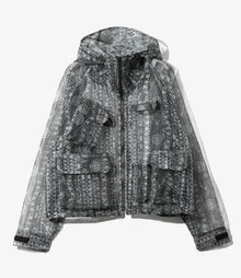 オリジナルのプリントが施された、個性的なメッシュ素材で制作したフィッシングジャケット。収納力抜群の多彩なポケットやロッドホルダー、ショート丈のデザインなど、本格的な仕様のフィッシングジャケットです。メッシュ素材は通気性抜群で水濡れにも強く、アウトドアでは抜群の存在感を発揮します。メッシュの透け感を活かした、ユニークなレイヤードも魅力的なアイテムです。