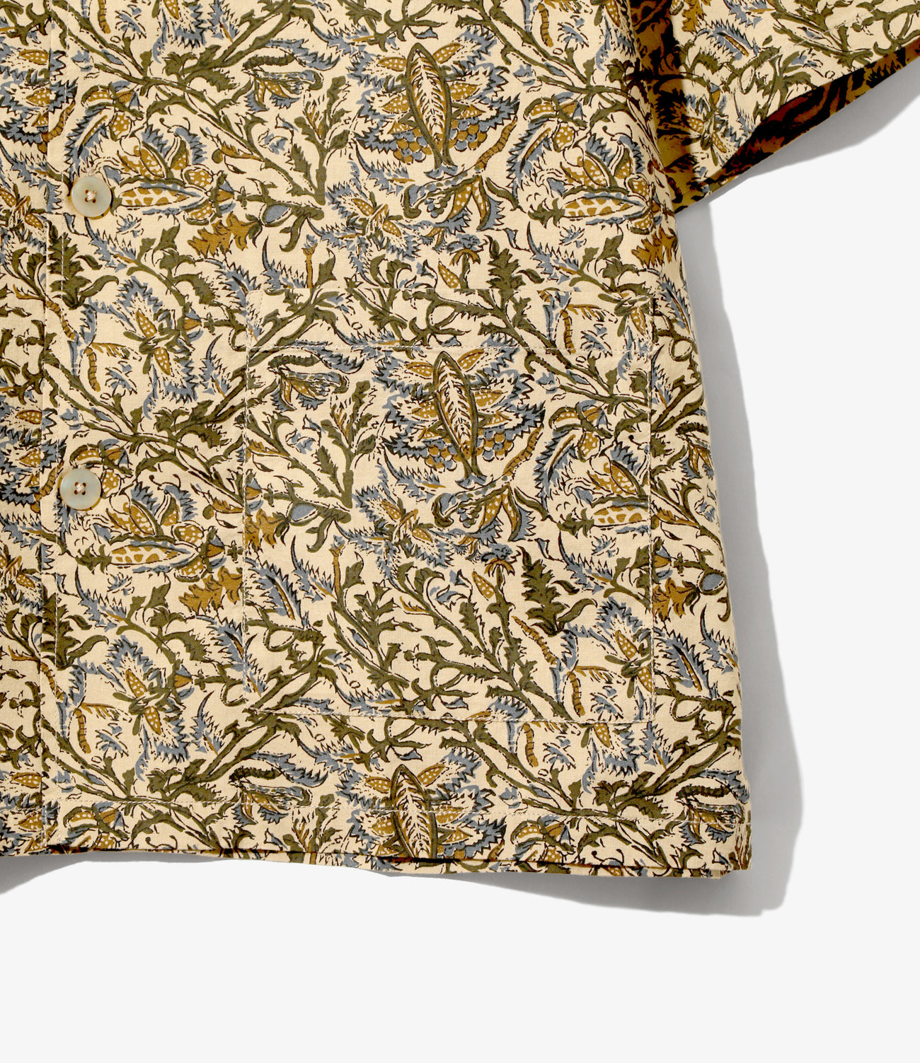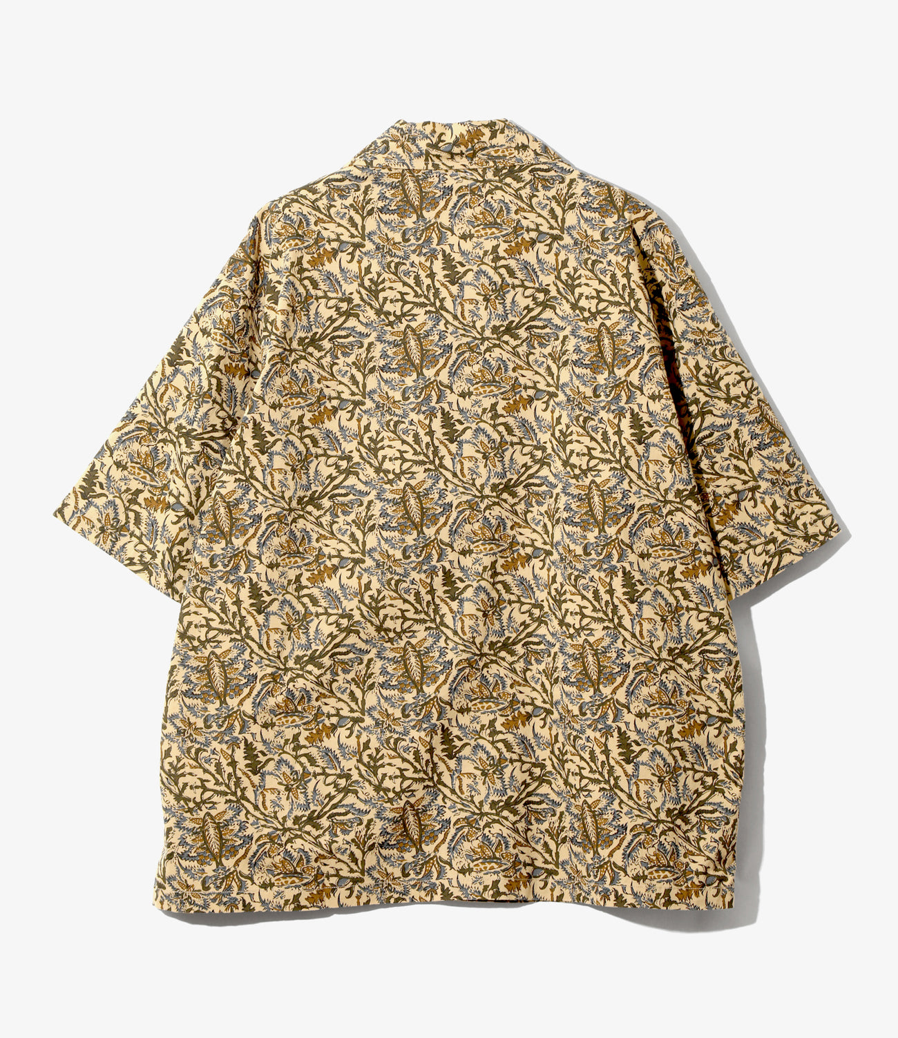 オープンカラーにワイドなボックスシルエット、やや長めに設定されたハーフスリーブなど、シンプルながらリラックス感漂うデザインのカバナシャツ。個性的で表情豊かな一枚に仕上げました。薄手のコットン100%素材を使用し、通気性がよく快適な着心地です。エスニックなムードを漂わせるプリントを施したインドファブリックで、個性的かつ表情豊かな一着に仕上げました。