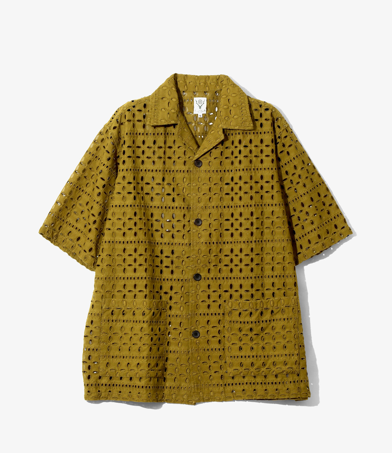 オープンカラーにワイドなボックスシルエット、やや長めに設定されたハーフスリーブなど、シンプルながらリラックス感漂うデザインのカバナシャツ。繊細で立体的なインド製のカットワーク生地を使用。通気性がよく、透け感を活かしたユニークなレイヤードのスタイリングもお楽しみ頂けます。