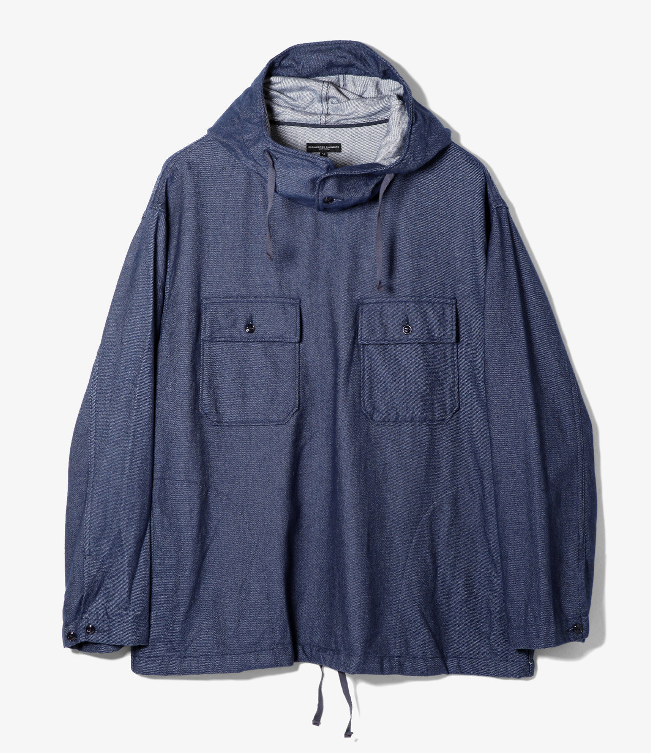 プルオーバーのフーディを、シャツ素材で制作したユニークな定番アイテム。単体でももちろん、レイヤードアイテムとしても存在感を発揮する一着です。首元と裾にはドローコードを備えており、シルエットに変化を加え幅広いスタイリングをお楽しみいただけます。