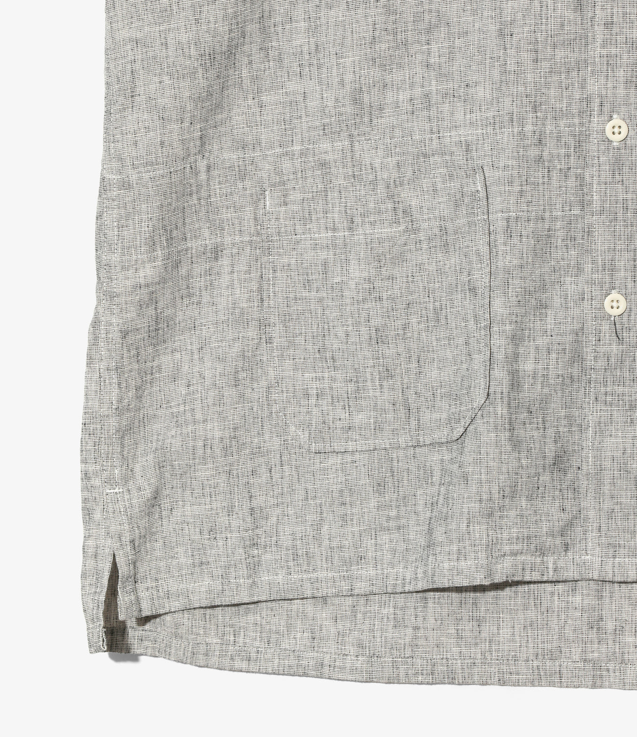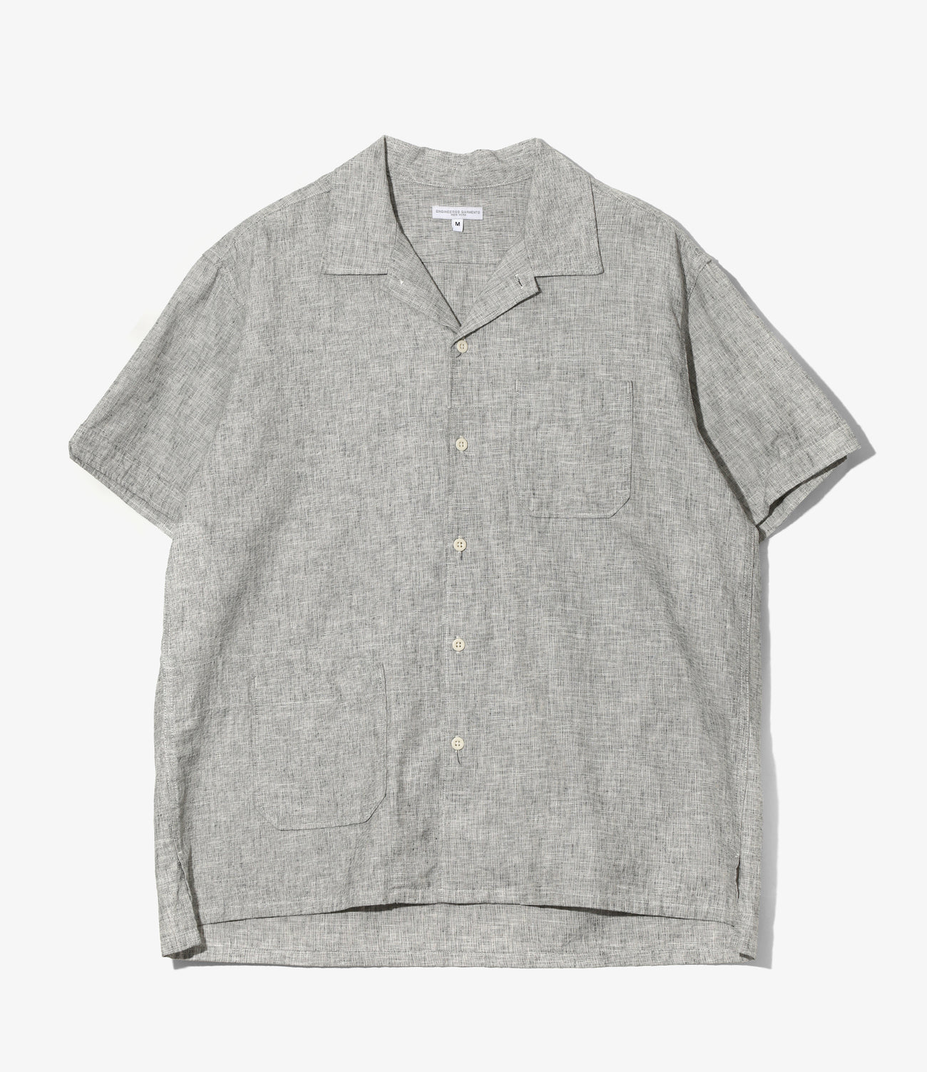 リラックス感のあるオープンカラーや、対角に取り付けられたパッチポケットなど、カジュアルなリゾートウェアを思わせる夏らしいデザインの半袖シャツ。〈ENGINEERED GARMENTS〉では春夏の定番アイテムのひとつです。コットンリネンを使用したメランジ生地を使用しさらりとした着心地です。