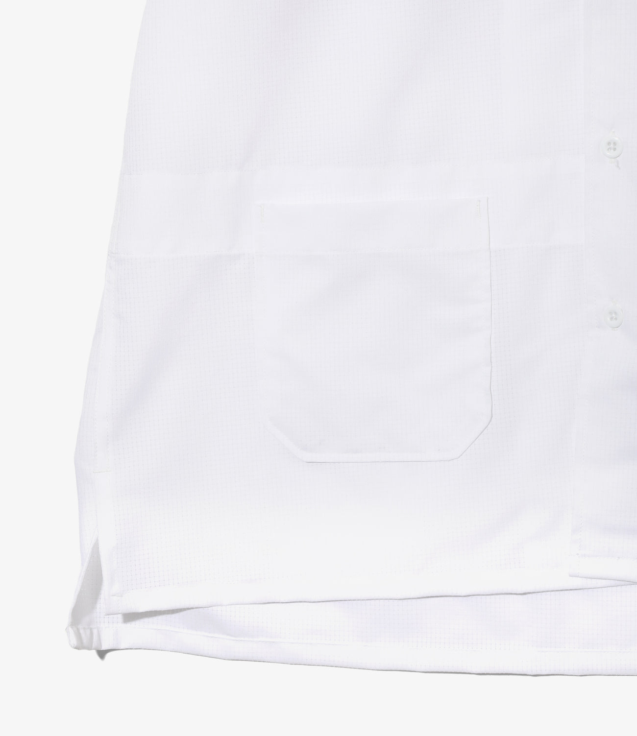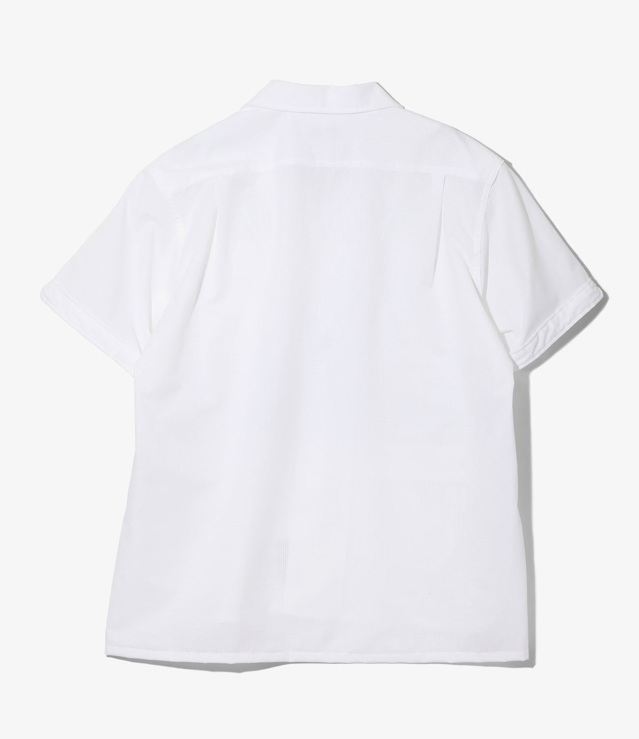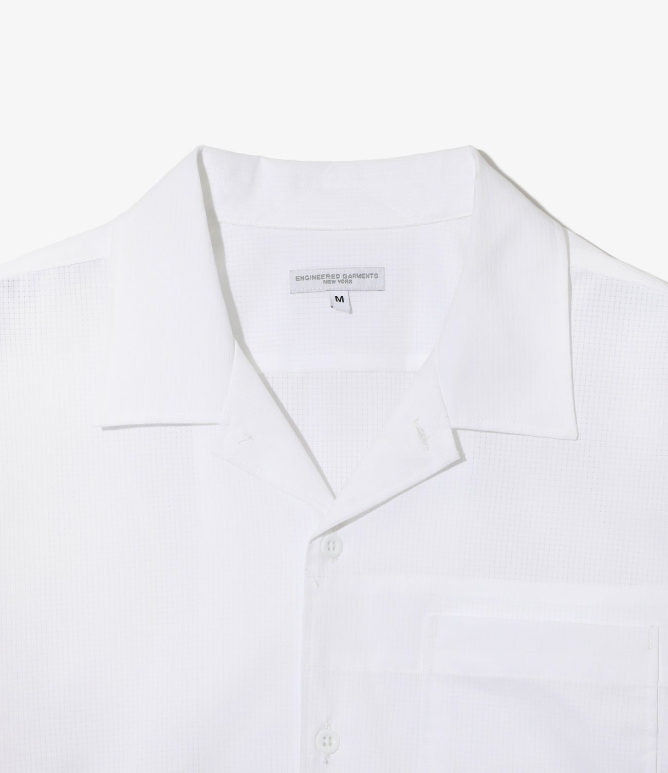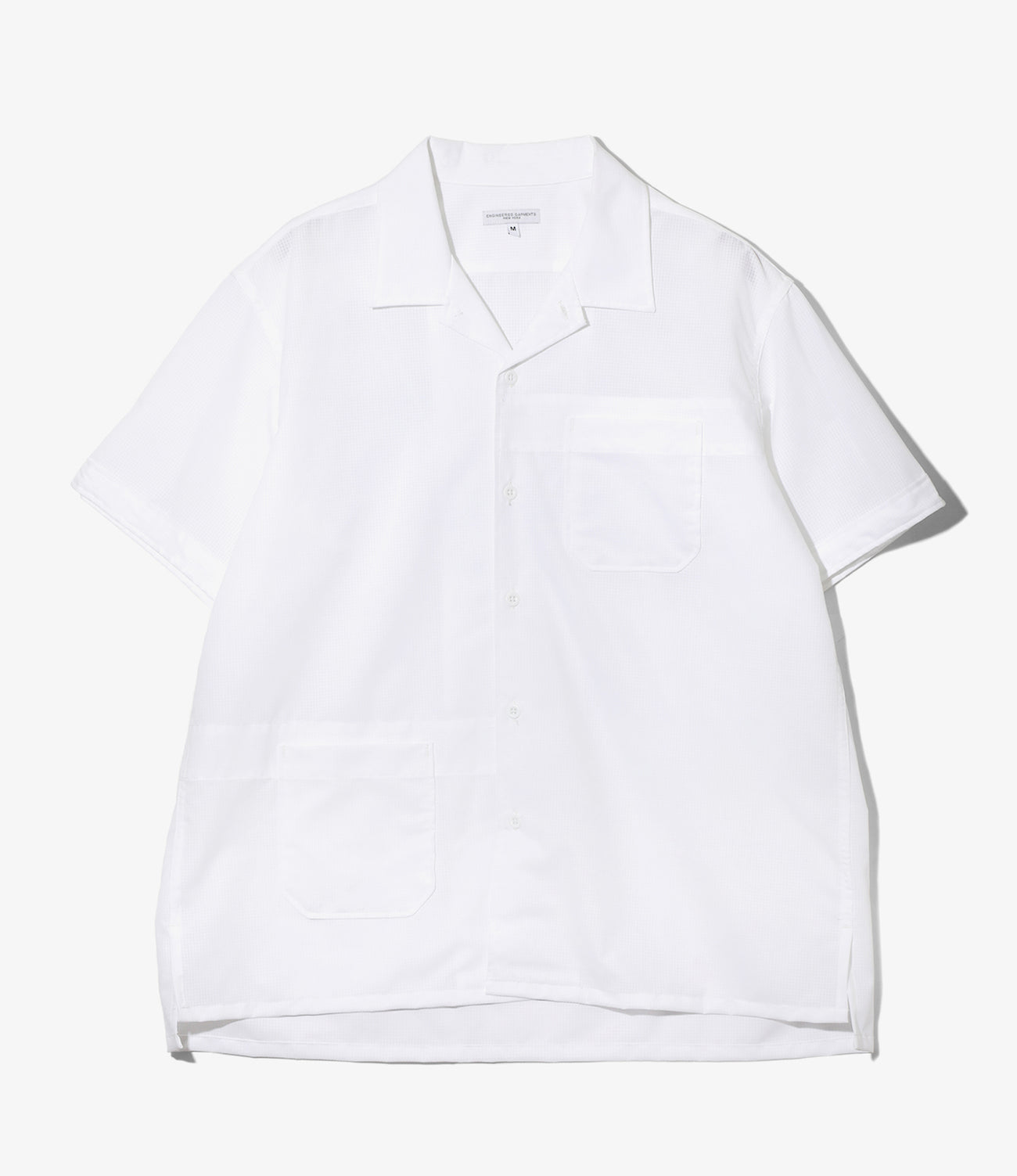 リラックス感のあるオープンカラーや、対角に取り付けられたパッチポケットなど、カジュアルなリゾートウェアを思わせる夏らしいデザインの半袖シャツ。〈ENGINEERED GARMENTS〉では春夏の定番アイテムのひとつです。ポリエステルメッシュ生地を使用し、涼感のある夏らしい一着に仕上がっています。