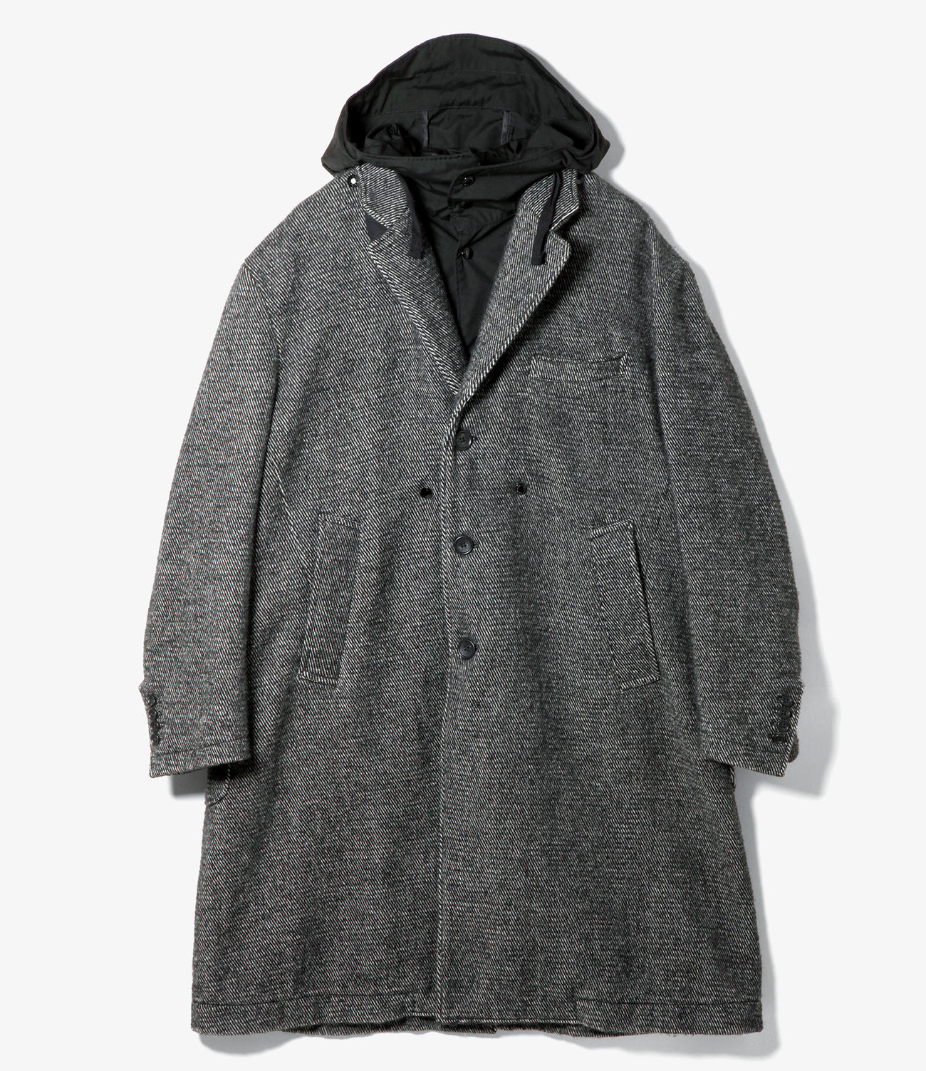 今シーズン〈ENGINEERED GARMENTS〉からリリースされているチェスターコート。従来のチェスターコートのボディに取り外し可能なフーディーが特徴的なアイテム。それぞれ単体でも使用可能で様々なシーンで幅広く活躍します。