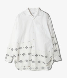 左右に広く開いた小ぶりな襟型と表側に見えるステッチを極力抑えたミニマムでドレッシーなデザインのスプレッドカラーシャツ。身頃や袖に生地の切り替えを施した、ユニークなコンボ仕様になっています。ライトオンスのシャンブレー素材を使用した、シーズンを超えて活躍する一着です。
