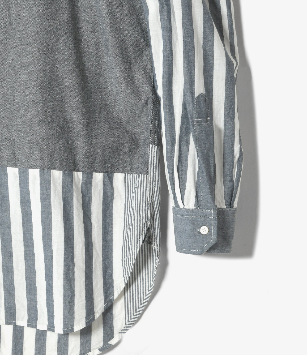 Combo Spread Collar Shirt - Stripe Cotton Chambray