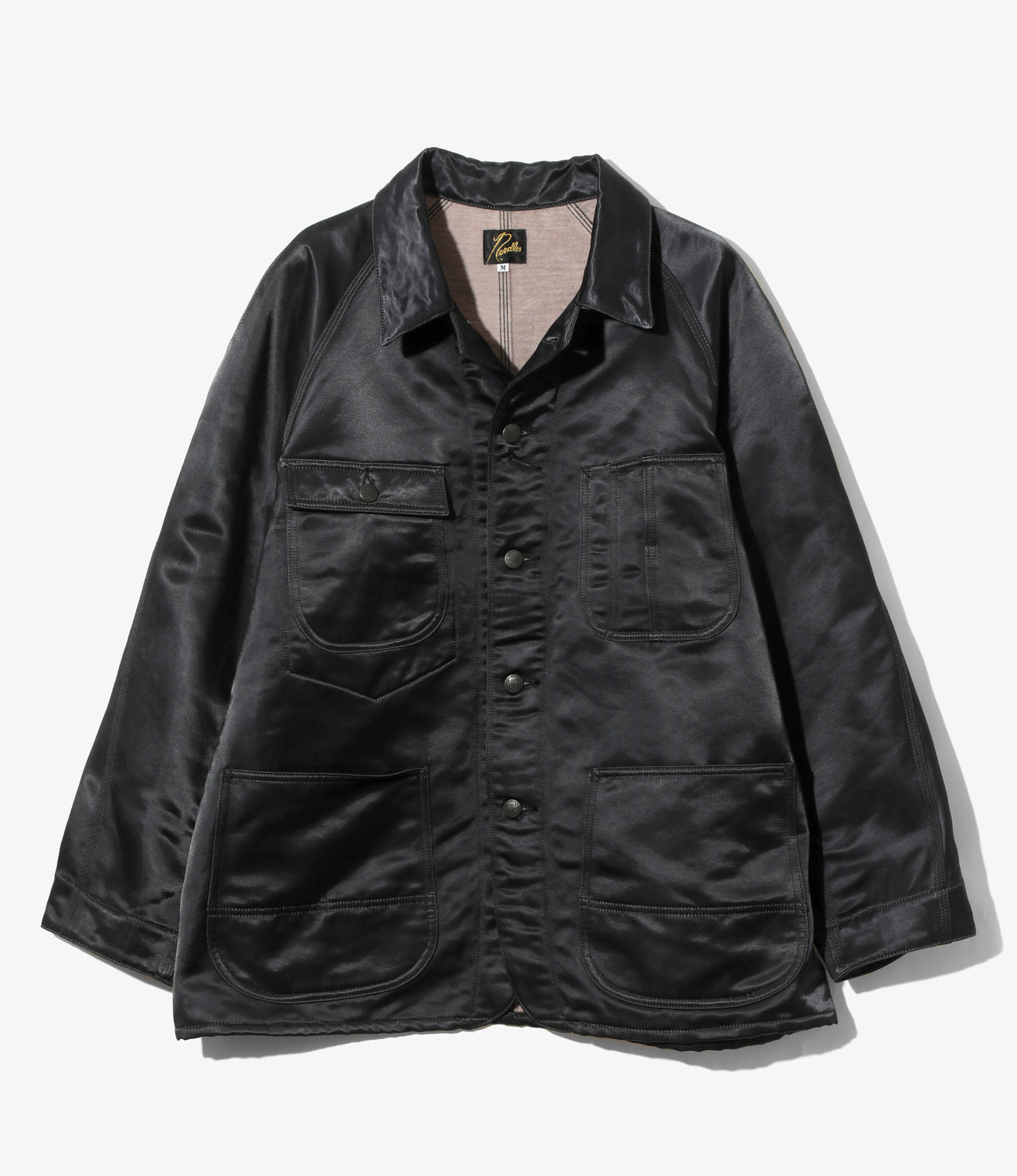 〈NEEDLES〉では定番のオーセンティックなスタイルのカバーオールジャケットが、個性的なオリジナルのデニム素材で登場。カバーオールらしいトリプルステッチやラグランスリーブ、やや中央に傾けて配置された左右非対称な胸ポケットに蝶の刻印のメタルボタンなど、特徴的なディテールが詰まったデザイン。素材は光沢感が目を引く、コットンナイロンを採用しています。