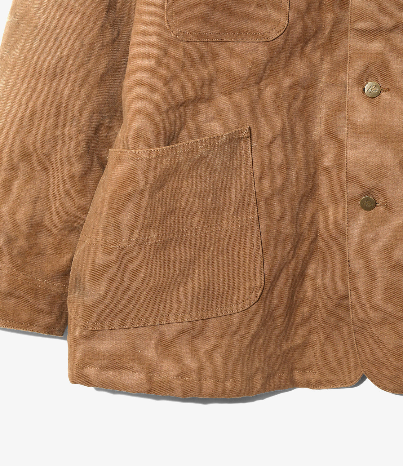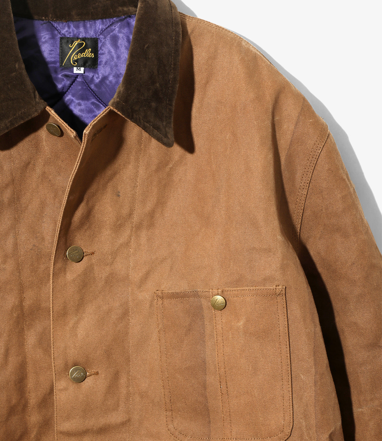 〈NEEDLES〉では定番のオーセンティックなスタイルのカバーオールジャケットが、ヴィンテージな雰囲気を感じられるダックキャンバスで登場。古来より使用されてきた自然由来の柿渋塗料を使用し、重厚感を感じるファブリックに染め上げています。