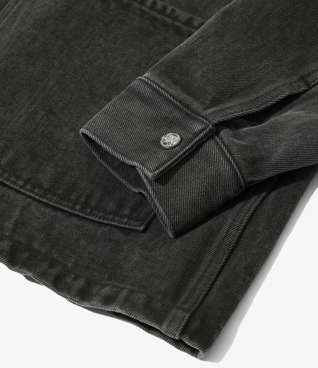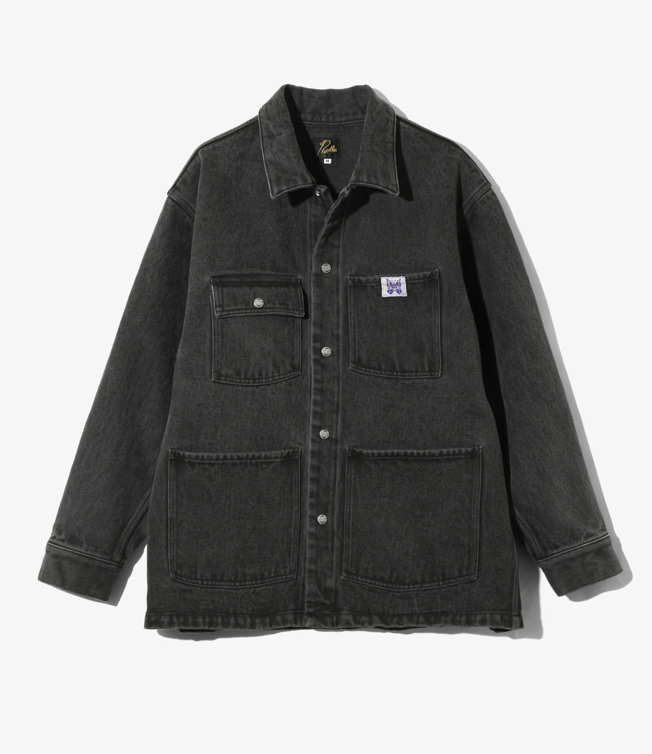 〈NEEDLES〉では定番のカバーオールジャケットが、無骨なヘビーツイルで登場。スタンダードな4つポケットとオーセンティックなスタイルを継承しつつ、パピヨン(蝶)のスナップポタンが存在感を放つデザインとなっています。同素材のパンツとセットアップでの着用も可能です。