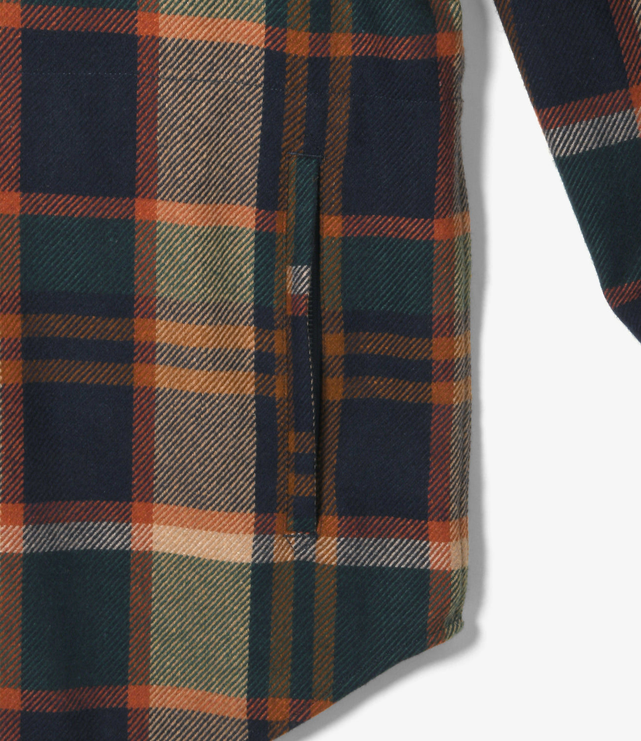 アメリカ海軍下士官(Chief Petty Officer)が艦上で着用していた作業服がルーツのシャツジャケット。両胸のフラップポケットやチンストラップが特徴的で、ライトアウターやインナーとしても幅広く活躍します。密度の高いヘビーウールを使用したチェック柄が秋冬らしいアイテムです。