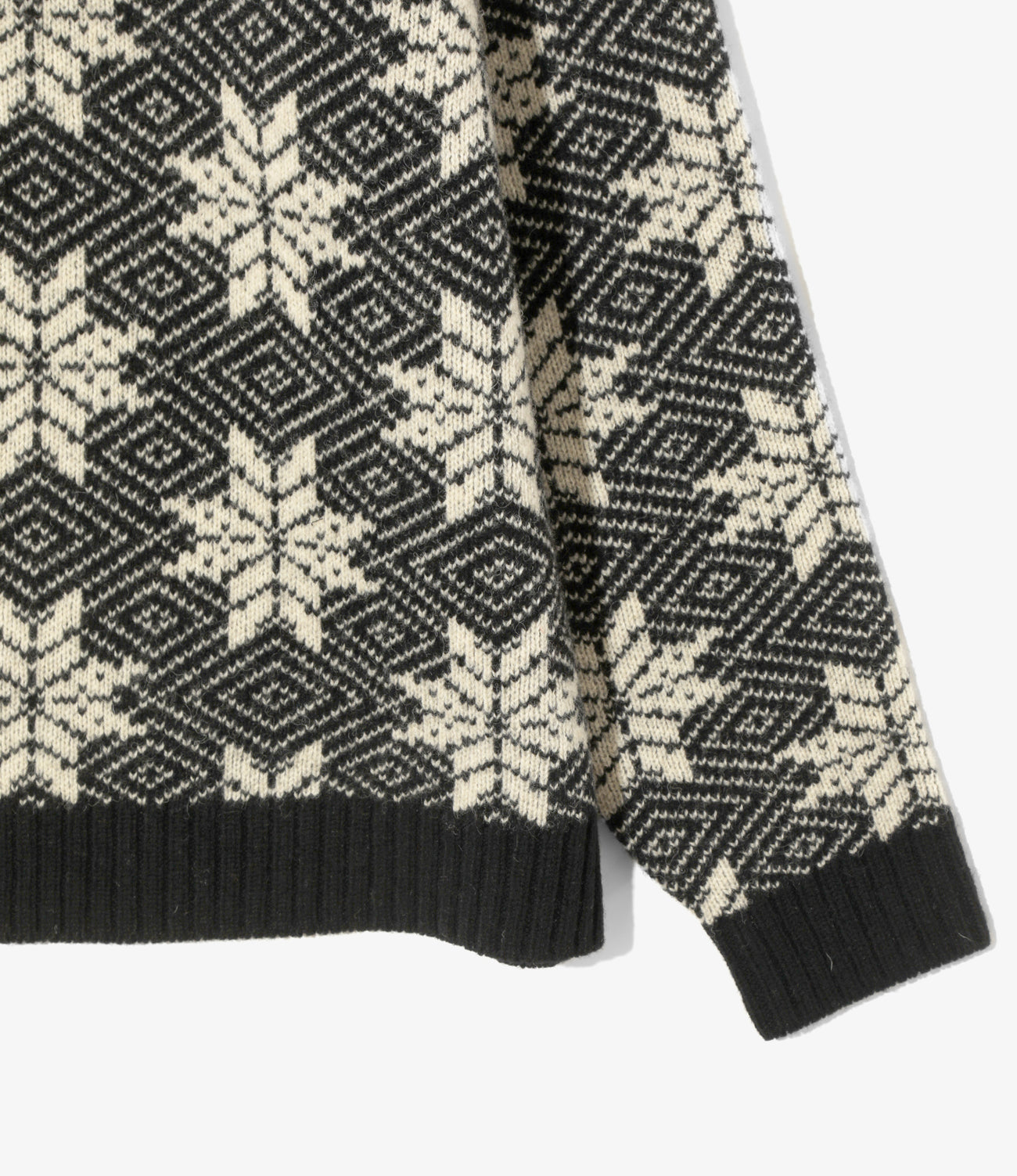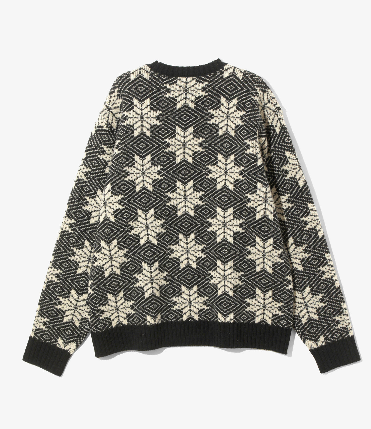 大胆な雪の結晶が冬らしい個性的なセーターの登場です。ボリュームを抑えた適度な厚みで、秋冬シーズンを通して幅広く活躍するアイテムとなっています。同シリーズのニットスカーフと合わせてのコーディネートもおすすめです。