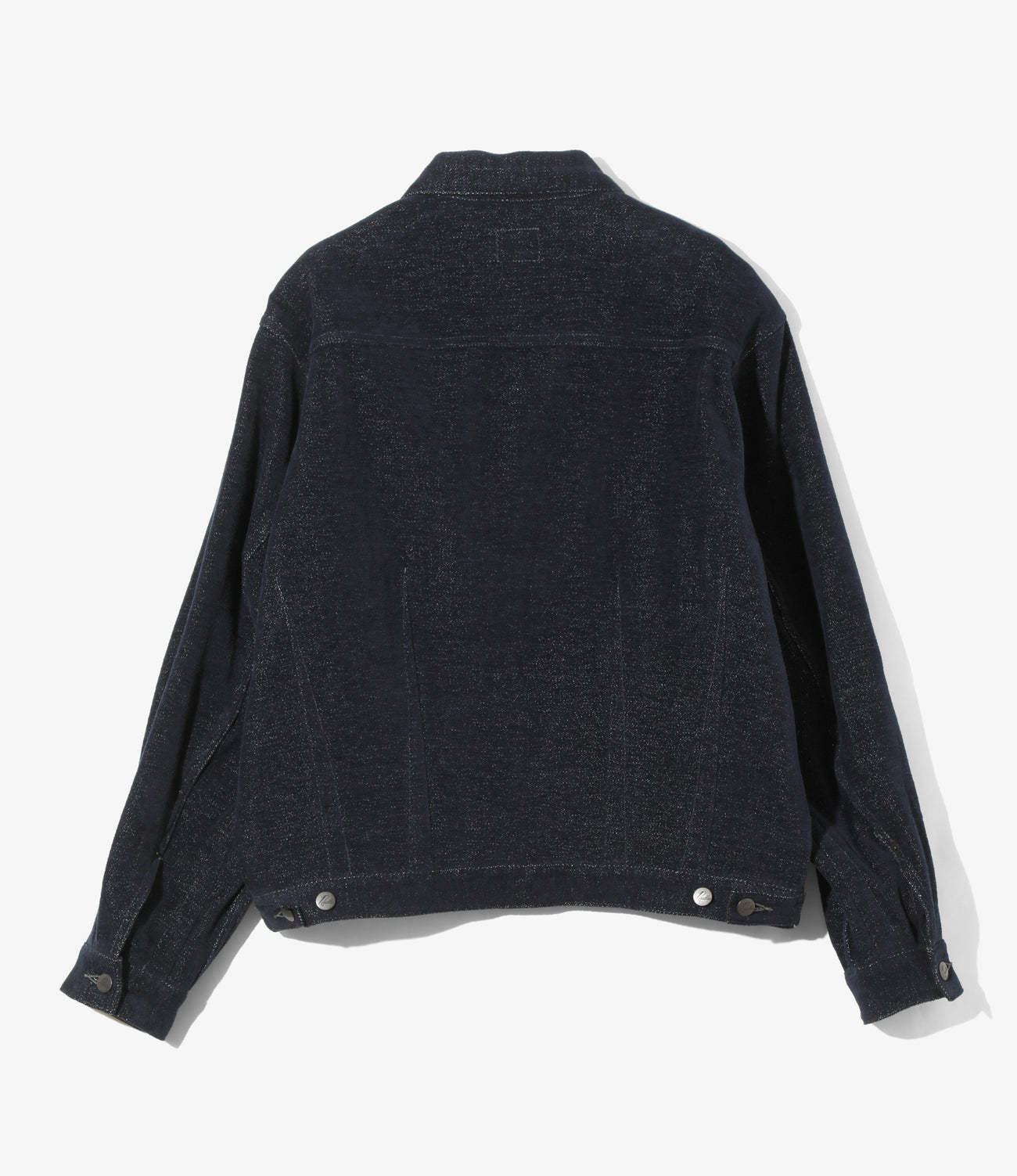 昨シーズンよりコレクションに加わった新定番アイテム。オーセンティックなジーンジャケットのデザインをベースに、フロントとバックの裾部分にダーツ処理を施すことでユニークなシルエットを実現。見頃部分が立体的に膨らんだようなボリュームのあるシルエットが特徴的な一着となっています。ファブリックはコットンと和紙を組み合わせた独特の生地で、シェニール織りにより立体的で柔らかい質感でありながら、和紙特有の通気性や吸収性が、とても快適な着心地を提供します。