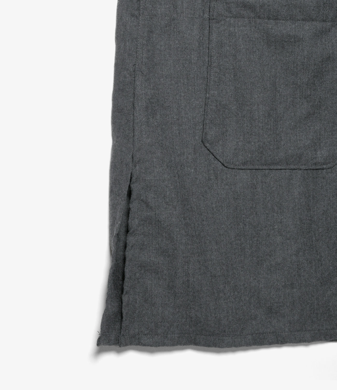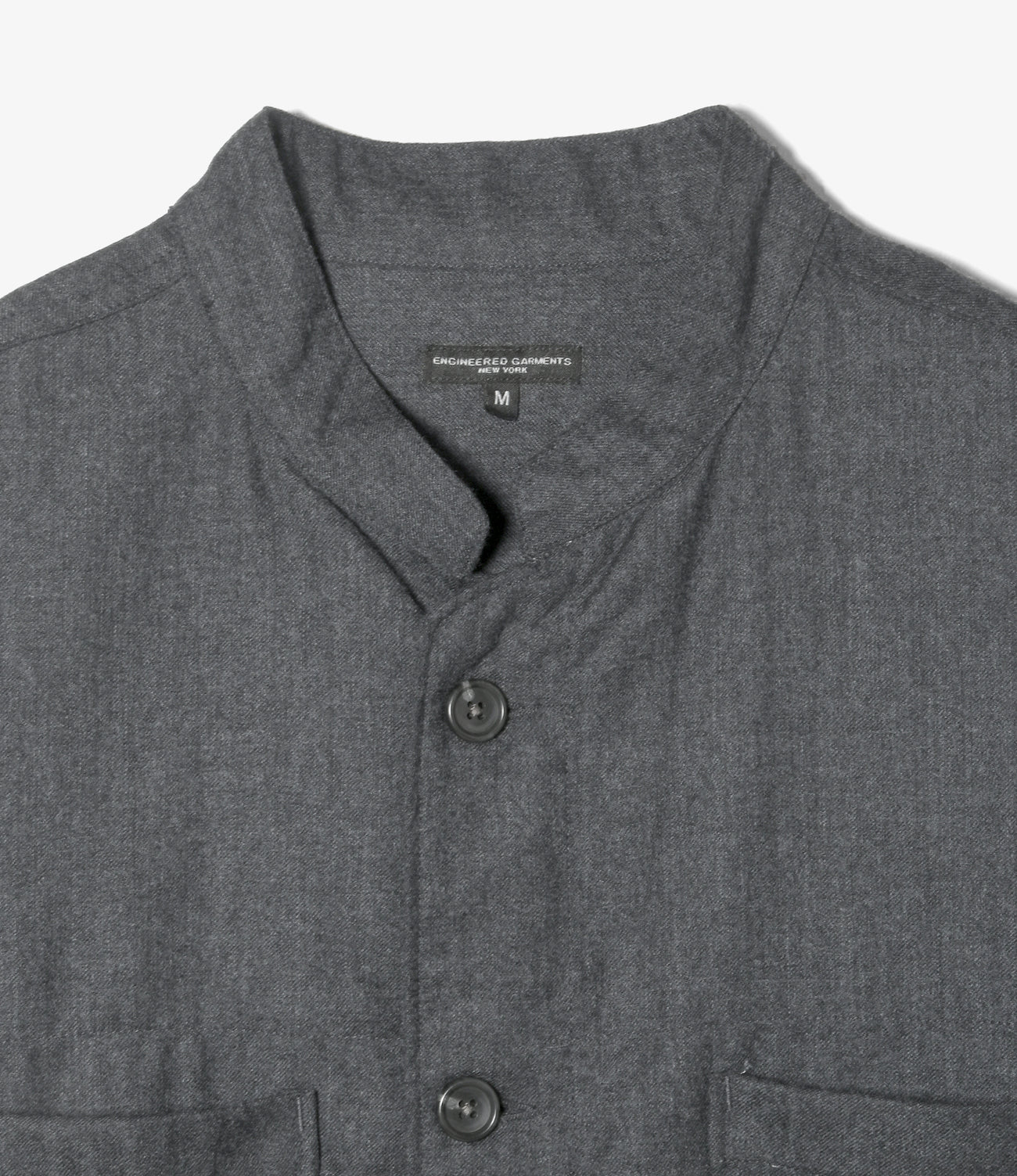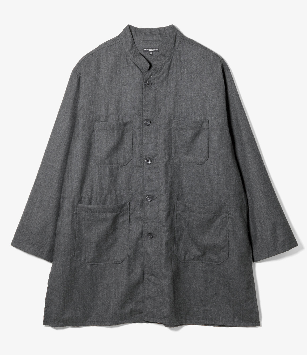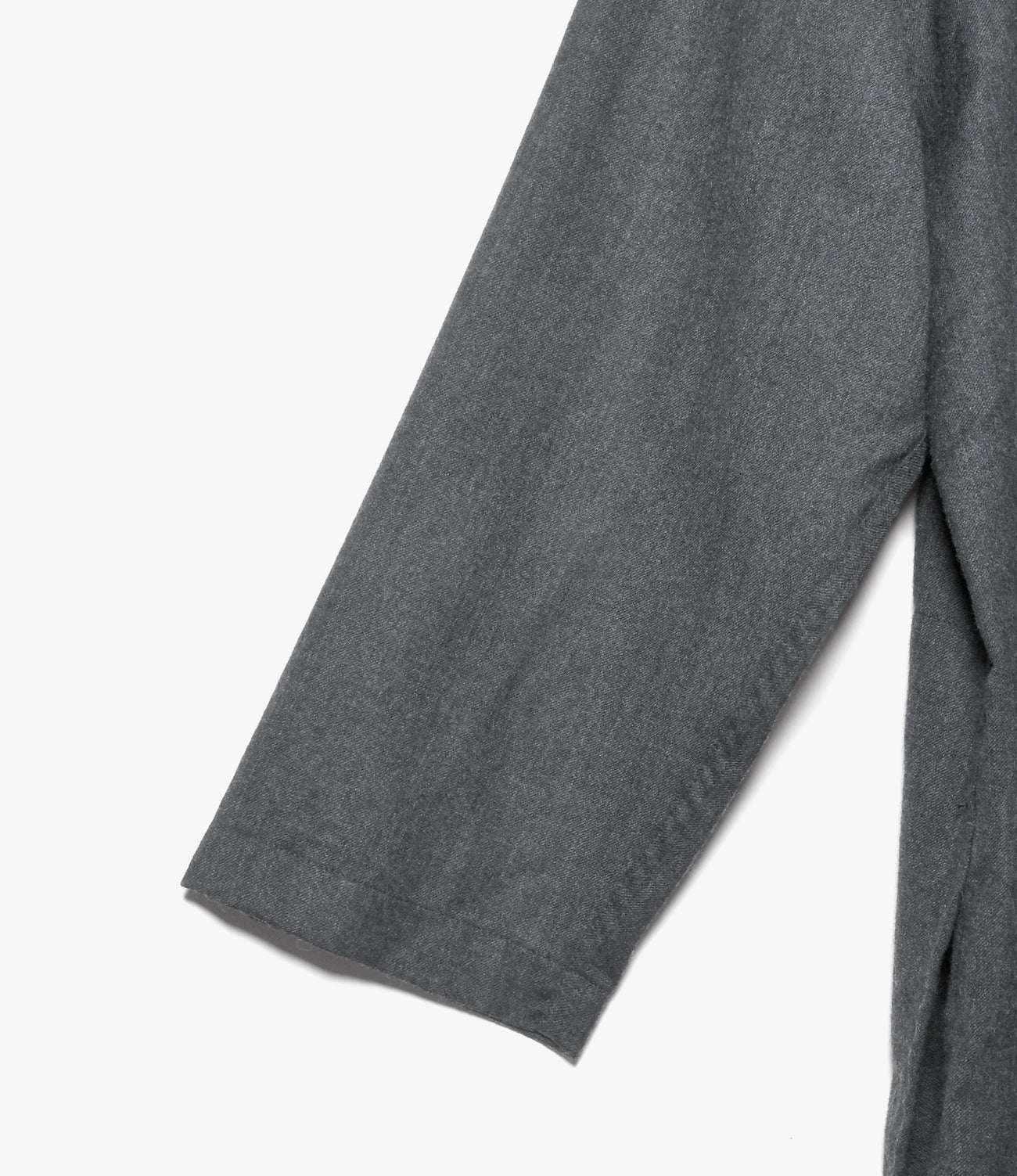 シャツジャケットとして人気のDAYTON SHIRTが更にロング丈になってリリースされました。スタンドカラーと、オフセットでデザインされた大きめのフロントボタンが特徴的なDAYTON SHIRT。シャツとして、または軽く羽織るシャツジャケットとしてもスタイルングを楽しめますが、ロング丈になったことでより着こなしの幅も広がりました。非常に滑らかで光沢感があるハイカウントウーステッドウールは、よりスタイリッシュで洗練された印象です。