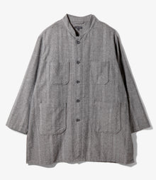 シャツジャケットとして人気のDAYTON SHIRTが更にロング丈になってリリースされました。スタンドカラーと、オフセットでデザインされた大きめのフロントボタンが特徴的なDAYTON SHIRT。シャツとして、または軽く羽織るシャツジャケットとしてもスタイルングを楽しめますが、ロング丈になったことでより着こなしの幅も広がりました。シックなカラーのストライプ柄で登場です。