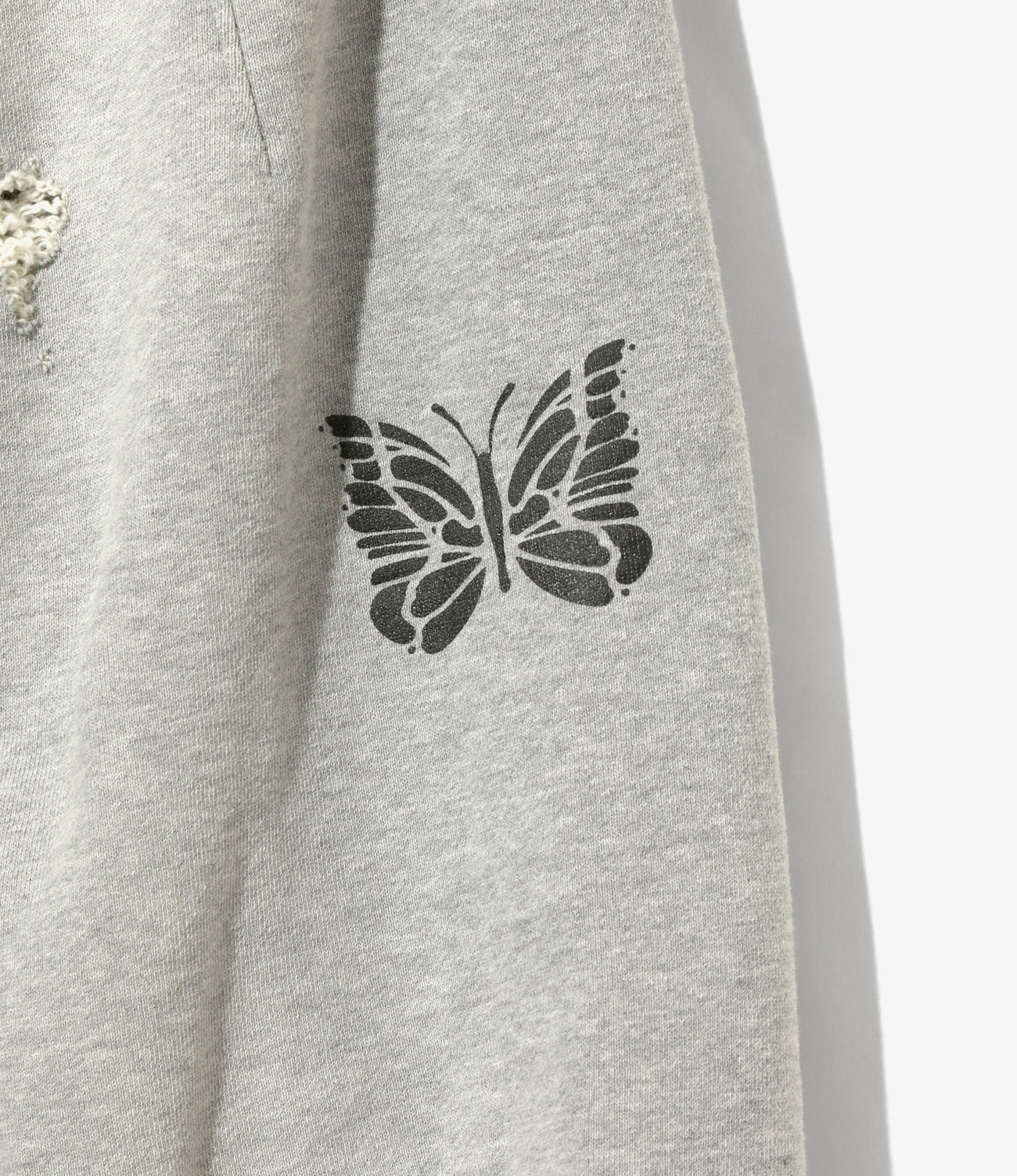 ヴィンテージスウェットのようなリアルなダメージや色褪せの加工が施されたスウェットパンツを〈NEEDLES〉人気のH.D.パンツ型でリリース。立体的なシルエットを生むダーツを施したデザインでパピヨンのプリントが映える、個性的な一着となっています。
