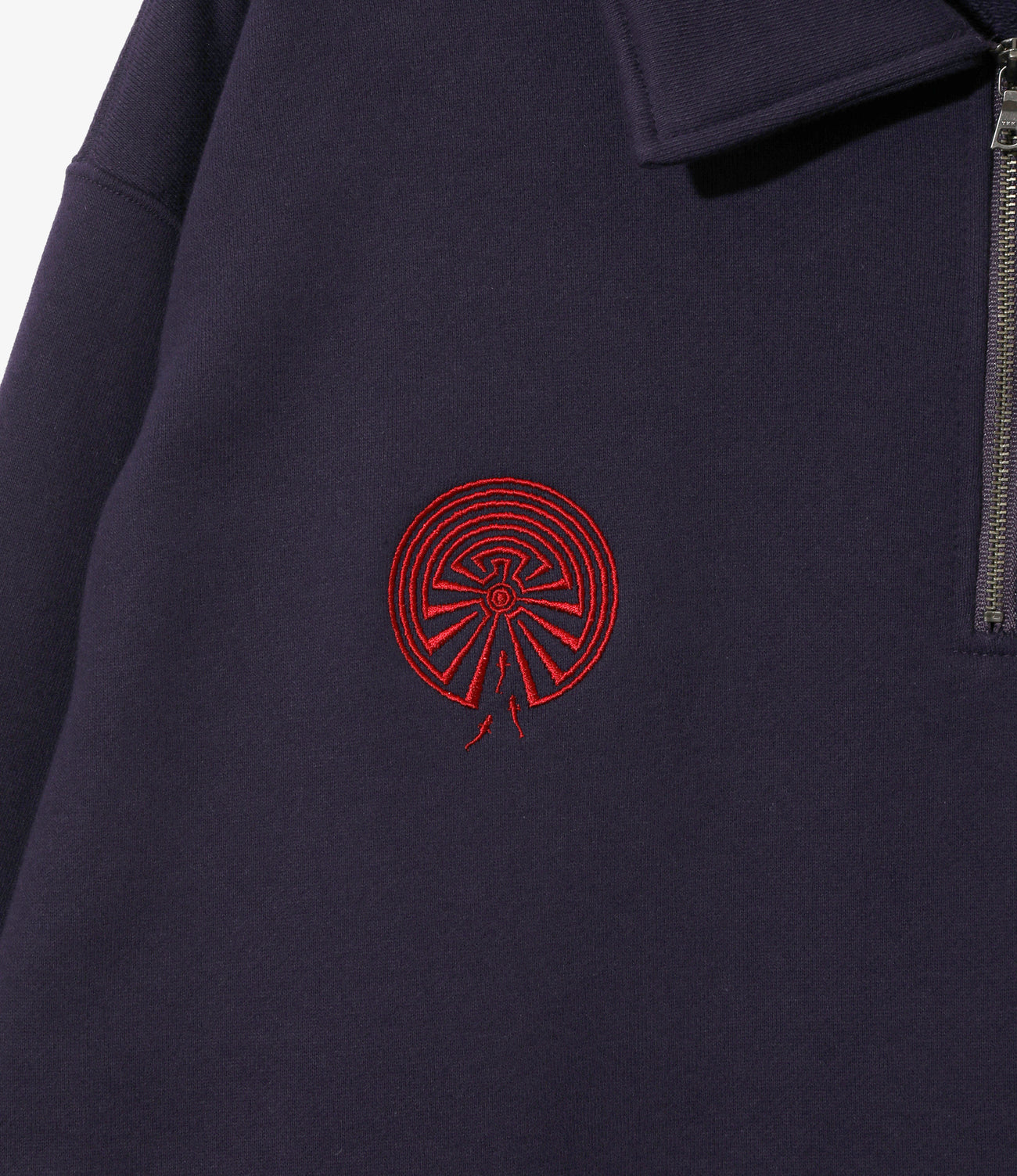Emb. Half Zipped Sweat Shirt - Cotton French Terry