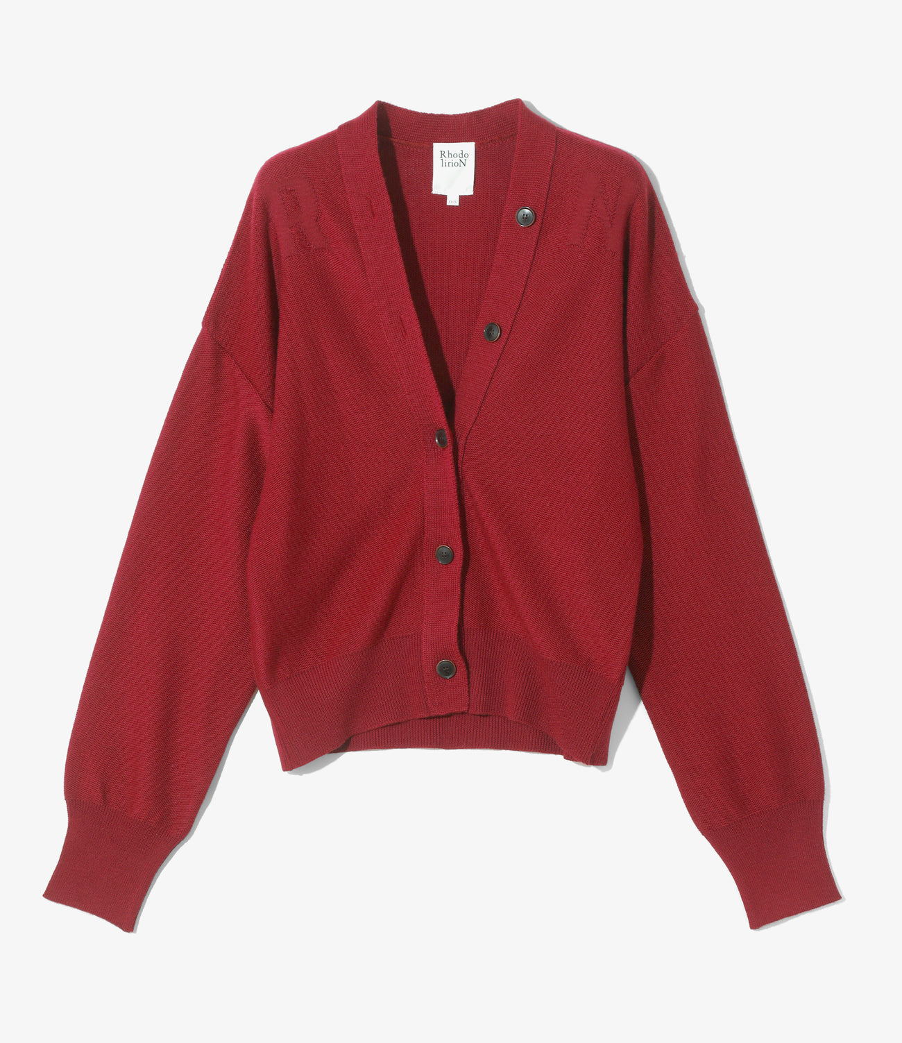 <RHODOLIRION>の頭文字を使って”R"と”N"が肩部分に浮き出しに編み込まれたアワードカーディガンです。Vネックモデルとなります。シックなカラー展開と、さりげないレターで大人の着こなしを楽しめます。素材はピリング(毛玉)の原因になる摩擦を軽減させる加工を施したアクリル糸と防縮ウールを混紡した、機能的でソフトな風合いを併せ持つ高級感のある素材です。着心地の良い柔らかさ、艶のある落ち着いた光沢感をお楽しみください。