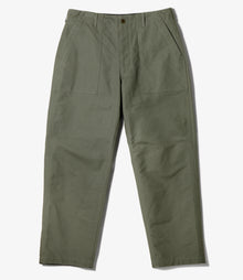 USアーミーのミリタリーパンツをベースに、独自のアレンジを加えた定番のファティーグパンツ。ナチュラルにテーパードがかかった、幅広いスタイルにマッチする万能型のシルエットが魅力です。特徴的なフロントのL字ポケット脇には、さらにジップポケットが追加されており、シンプルな中にも〈EG〉らしいユニークなギミックが備わっています。ブランドでは定番の、厚手の素材が生む立体感が魅力のコットンダブルクロスを使用。
