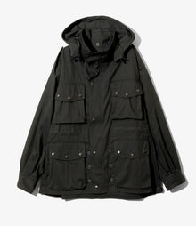 タフで機能的なディテールを多数備えた定番のフィールドコート。フロントに4つ、バックに1つの収納力の高いマチ付きフラップポケット、デタッチャブルのフード、スナップボタンを多用した重厚感のあるデザインが特徴的。コットン/ナイロンの混紡素材を使用しており、軽快で耐久性にも優れた仕上がりです。カラーはオリーブとブラックの2色展開。