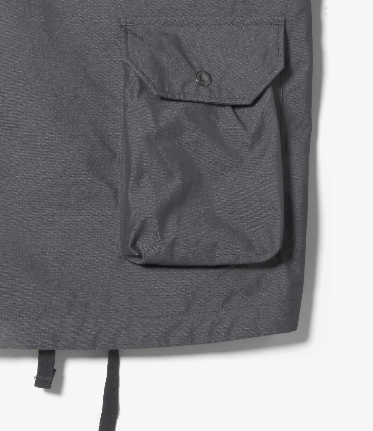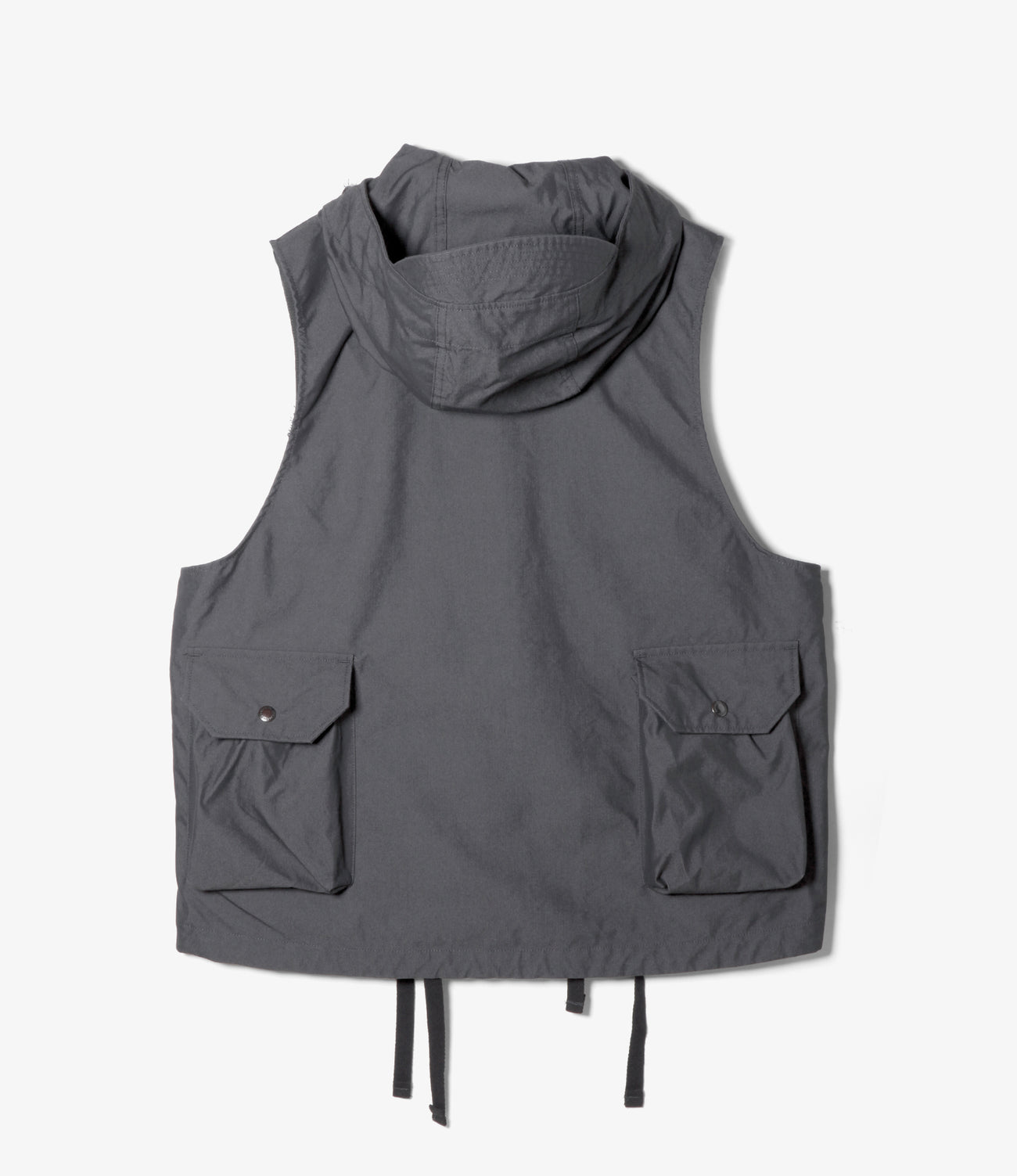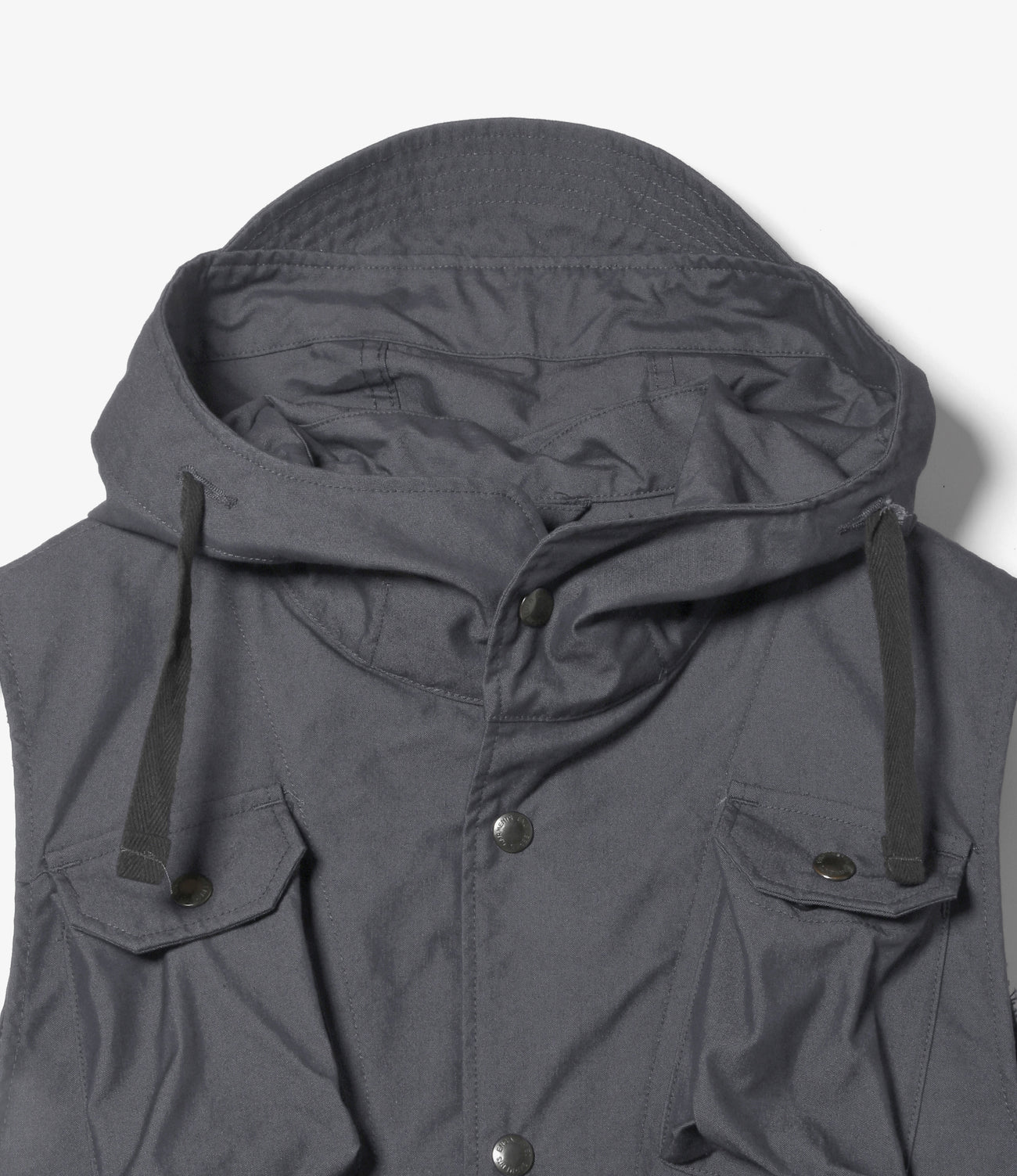 フロントに配されたマチ付きの大容量ポケット、スナップボタンやドローコードなど、アクティブなディテールを多数装備したフィールドベスト。大小サイズや形状の異なる多彩なポケットを備えており、非常に機能性に富んだアイテムです。軽量でありながら強度のあるCPウェザー素材は、アウトドアやミリタリーの雰囲気をさらに感じさせます。