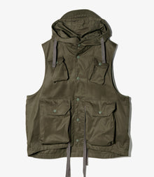 フロントに配されたマチ付きの大容量ポケット、スナップボタンやドローコードなど、アクティブなディテールを多数装備したフィールドベスト。大小サイズや形状の異なる多彩なポケットを備えており、非常に機能性に富んだアイテムです。さらに防水性の高いヴェンタイル素材を使用し、日常からアクティブなシーンにも対応します。