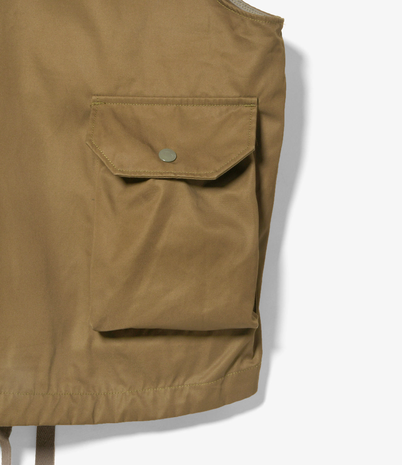 フロントに配されたマチ付きの大容量ポケット、スナップボタンやドローコードなど、アクティブなディテールを多数装備したフィールドベスト。大小サイズや形状の異なる多彩なポケットを備えており、非常に機能性に富んだアイテムです。さらに防水性の高いヴェンテイル素材を使用し、日常からアクティブなシーンにも対応します。
