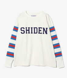 肉厚なコットンジャジー素材のフットボールTが〈SHIDEN〉よりリリースされています。フロント中央にはSHIDENの文字、スリーブにはストライプがプリントされた一着。エルボーにはパッチの補強が施されています。