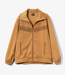 スポーティなトラックジャケットのフロント/バックヨークに、フリンジ飾りをあしらったユニークなアイテム。ウエスタンウェアのテイストをミックスすることで、一般的なトラックジャケットとは全く異なる魅力を引き出した一着です。しなやかな質感のジャージー素材を使用、ゴールドとブラックの2色でリリースしました。