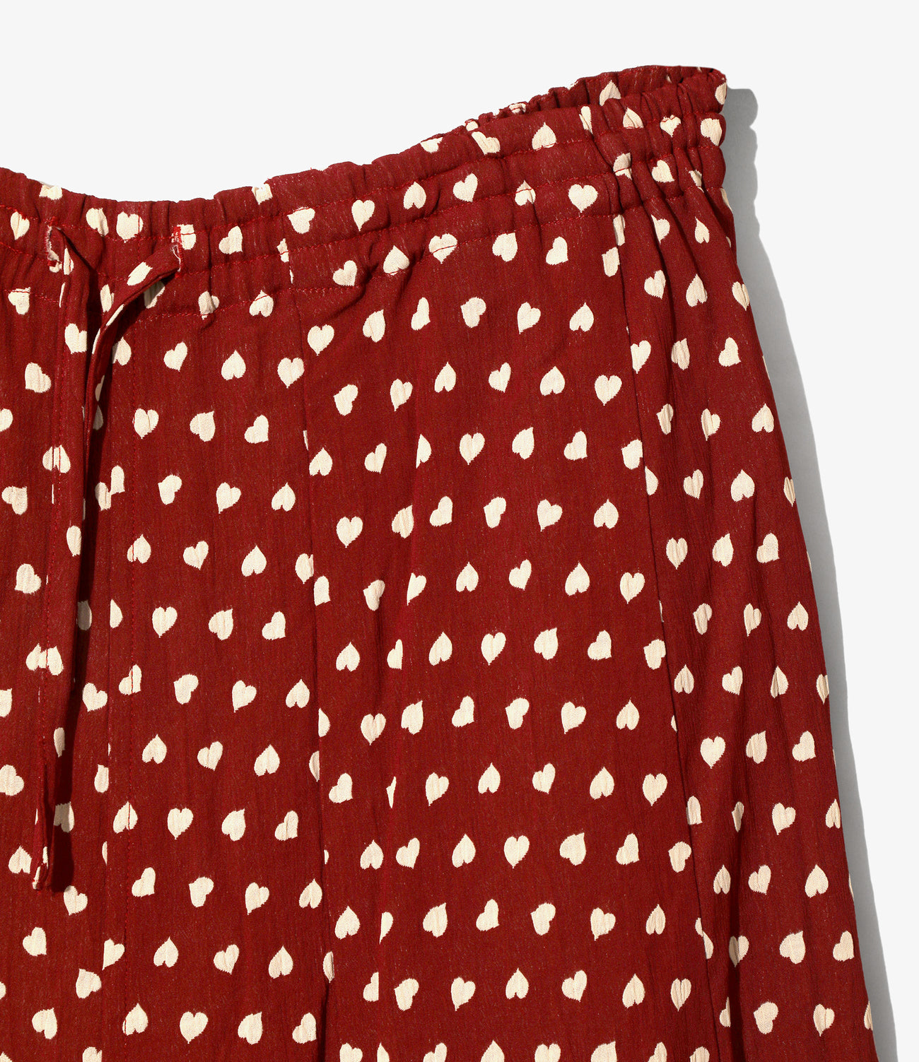 柔らかく光沢のあるレーヨン×アセテートのダブルウィーブジャガード素材を使用したH.D.バギーパンツ。なめらかなドレープと軽やかな履き心地で、リラックス感のあるシルエットに仕上げています。ウエストはドローコードのイージー仕様で調整可能。単品使いはもちろん、同素材のジャケットと合わせたセットアップスタイルもおすすめです。