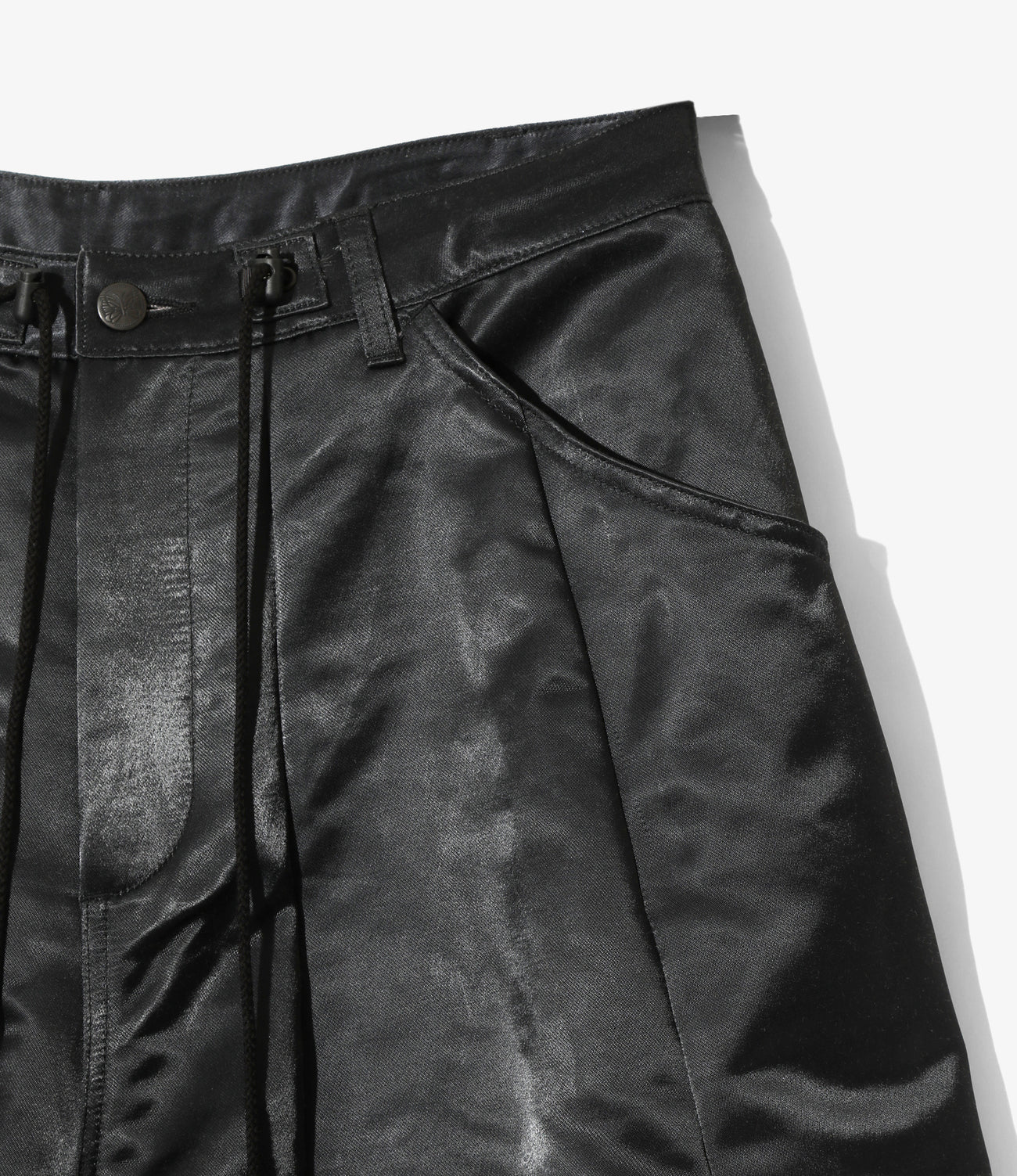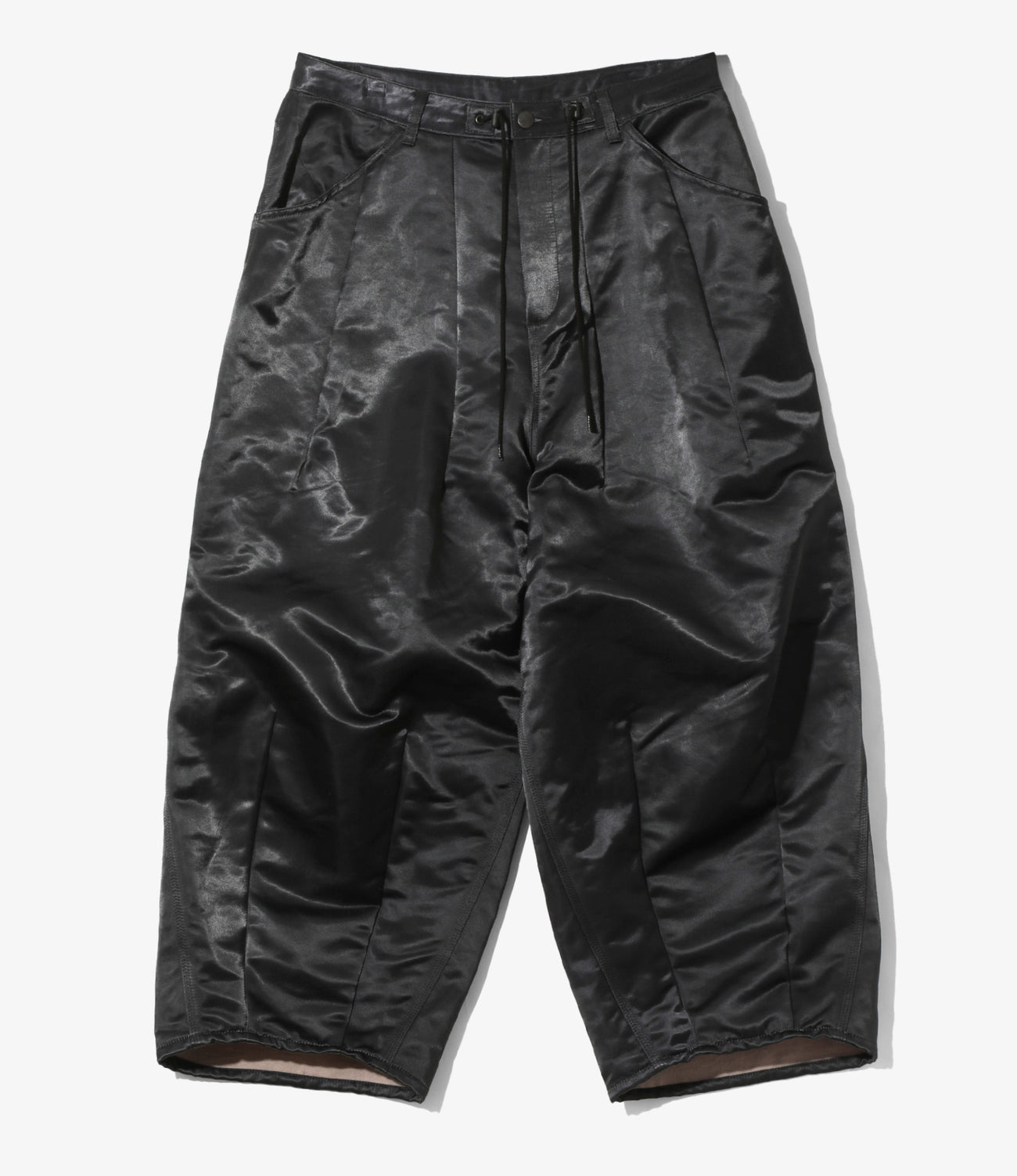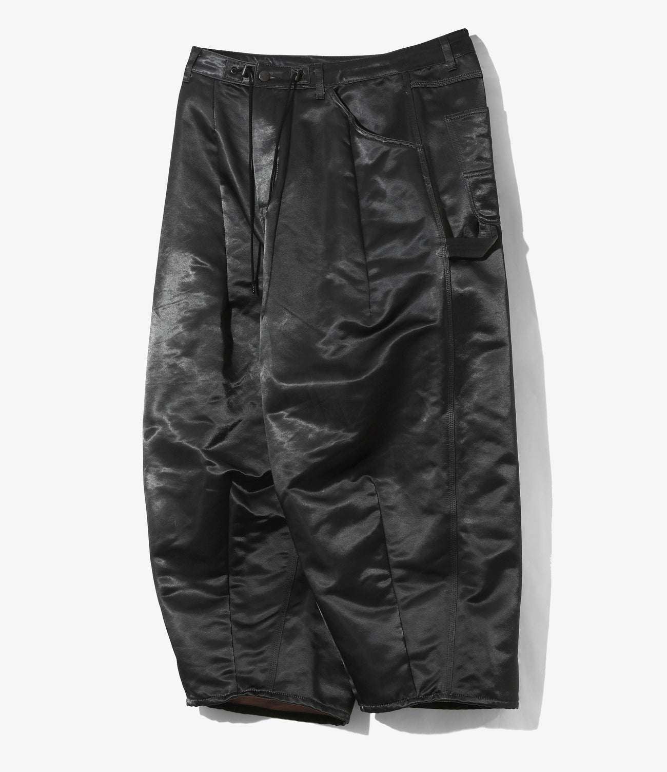 ウエストと裾部分に取り入れられたダーツ処理によって生まれる、大きく膨らんだ丸みのあるワイドシルエットが魅力の定番パンツ。ウエストのドローコード仕様や、締め付けのない着用感が、他にはないリラックスムードを漂わせるアイテムです。ハンマーポケットなどのディテールを備えたペインターパンツ仕様。素材は光沢感が目を引く、コットンナイロンを採用しています。