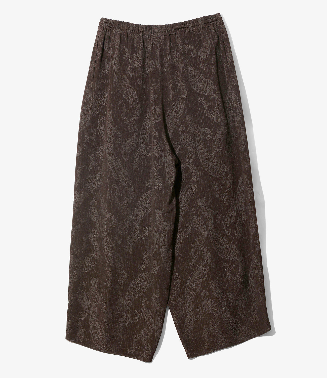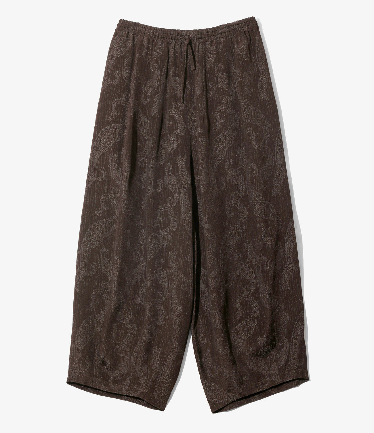 ウエストや裾に施されたダーツ処理によって、パンツ中央が大きく膨らんだ独特のワイドシルエットを生むNEEDLESの定番型。締め付けの少ないデザインが、非常にリラックス感のある履き心地を生み出します。肌触りの良いレーヨン素材は、着用した際に現れるドレープが美しい素材です。