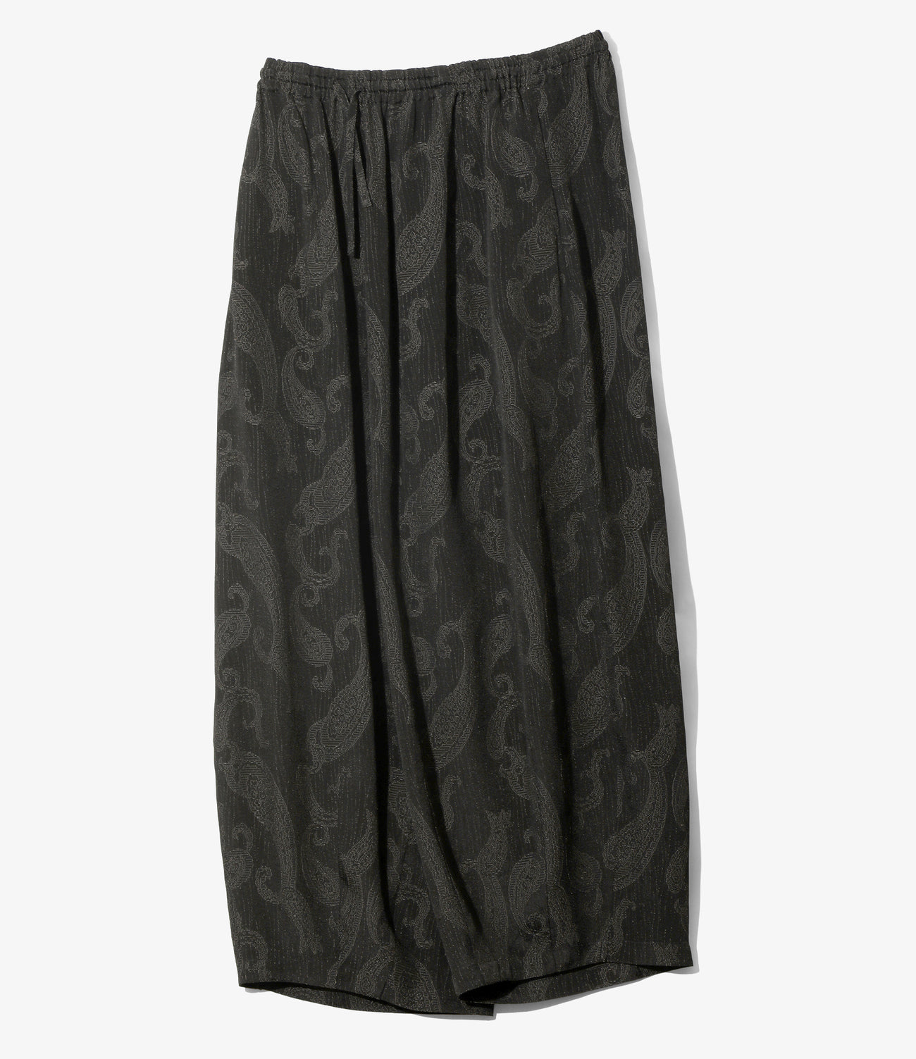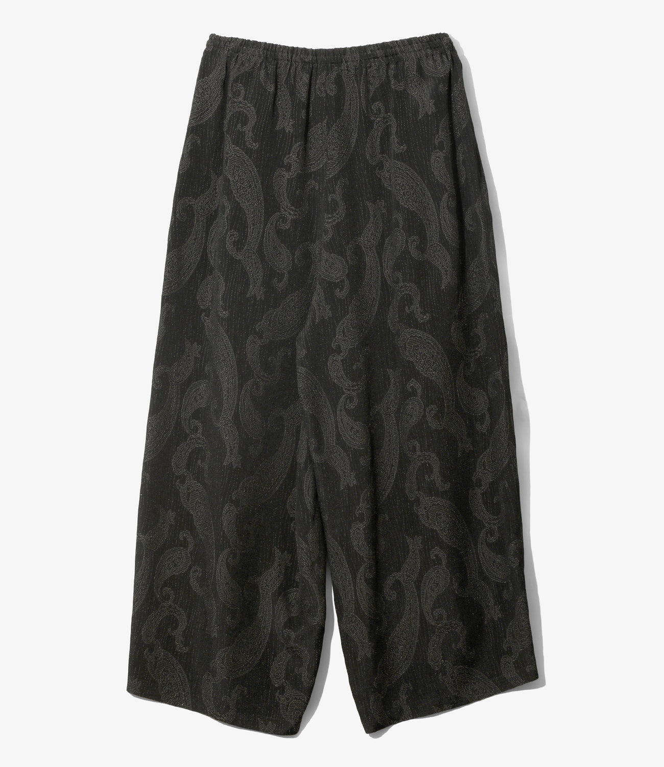 ウエストや裾に施されたダーツ処理によって、パンツ中央が大きく膨らんだ独特のワイドシルエットを生むNEEDLESの定番型。締め付けの少ないデザインが、非常にリラックス感のある履き心地を生み出します。肌触りの良いレーヨン素材は、着用した際に現れるドレープが美しい素材です。