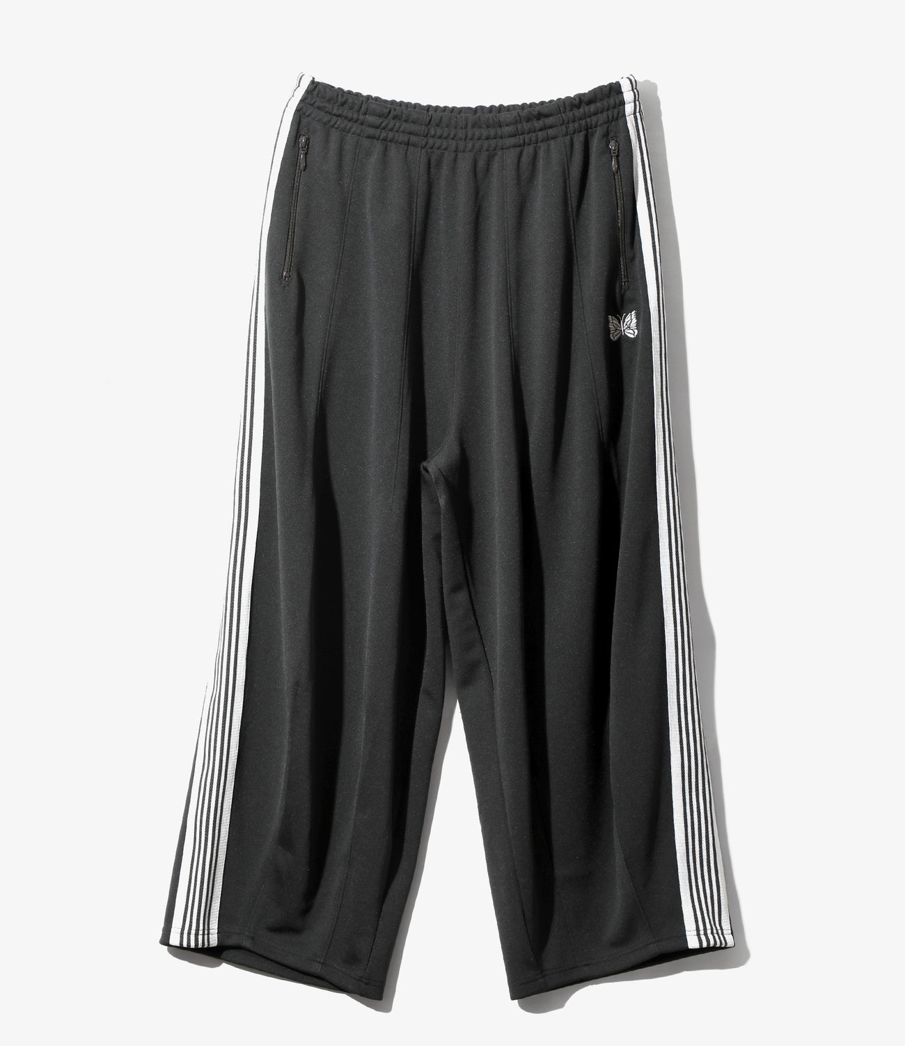 〈NEEDLES〉定番のトラックパンツが26年春夏シーズンの新色で登場。今シーズンはラスト、グリーン、チャコールの全3色です。伸縮性や通気性に富んだポリエステルジャージー素材を使用した快適性に優れたアイテム。独特の配色や刺繍デザインなど、一般的なスポーツウェアとは一線を画した華やかなファッション性が魅力となっています。トラックパンツと並び人気の高い〈NEEDLES〉の定番ボトムス、H.D. PANTのシルエットを落とし込んだ個性的な一本です。