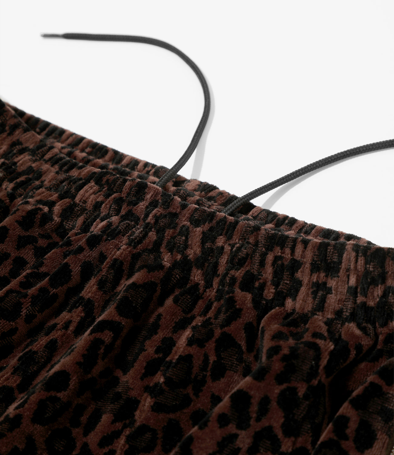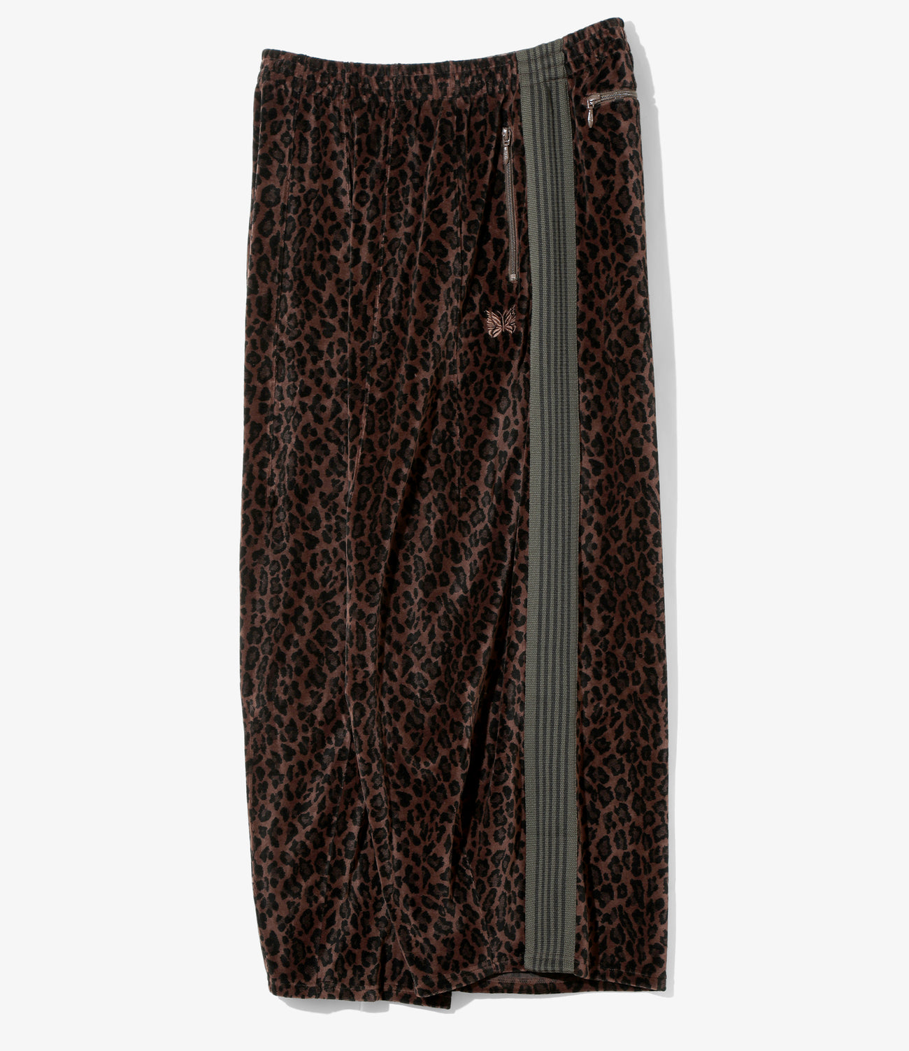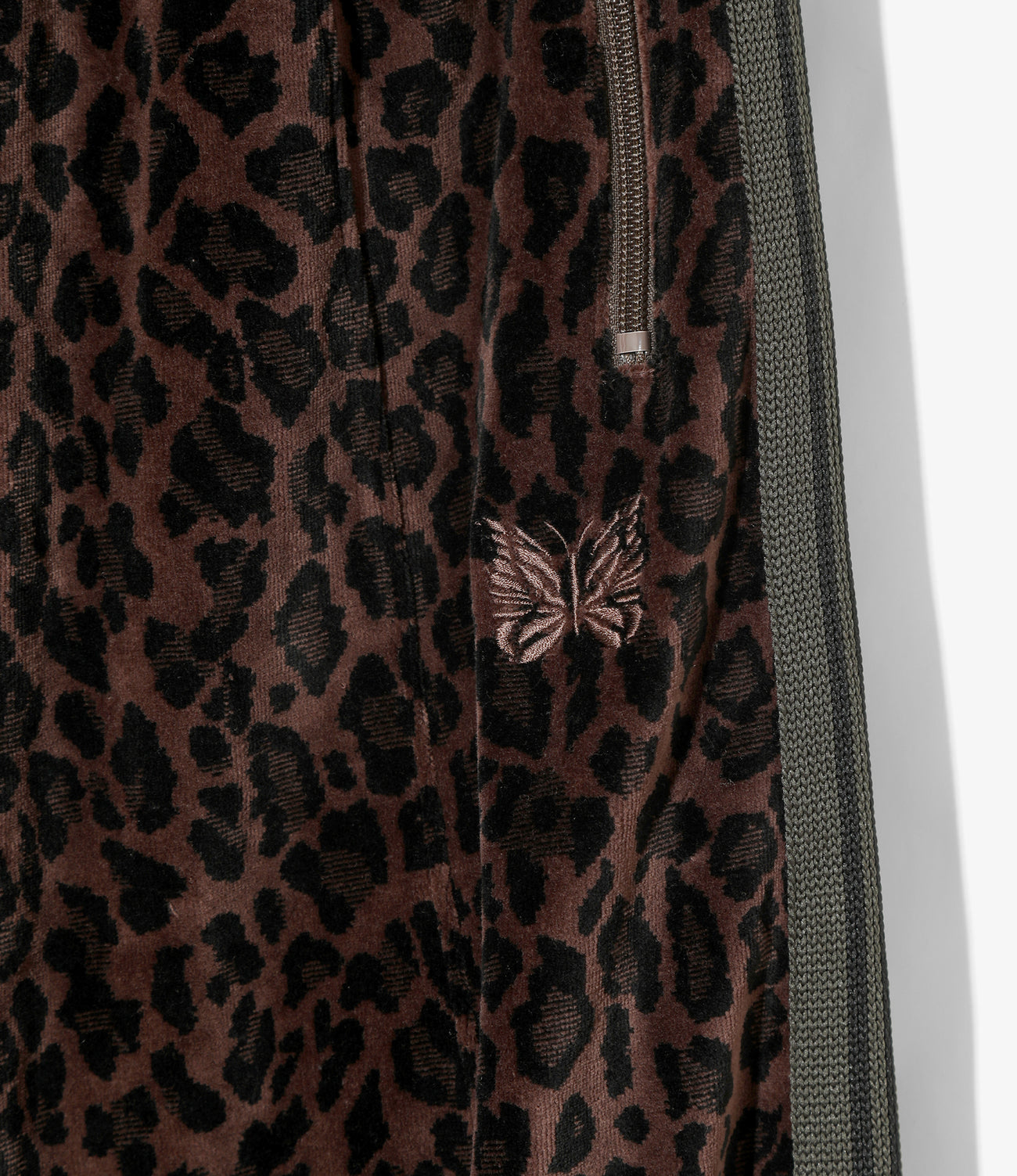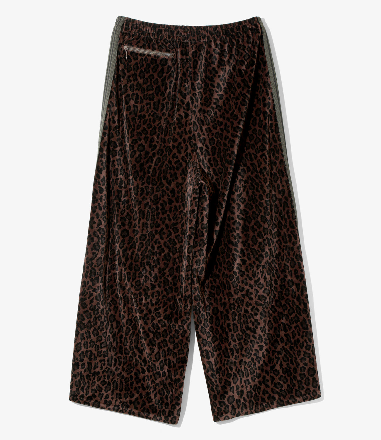 コレクションのためにオリジナルにデザインされたレオパード柄のベロア生地を使用。ベロア特有の光沢感がラグジュアリーな印象に。サイドには同系色のラインテープが施されています。同素材のトラックフーディとトラックパンツをご用意しており、セットアップでの着用も可能です。ブラウン、ブラックの2色展開。
