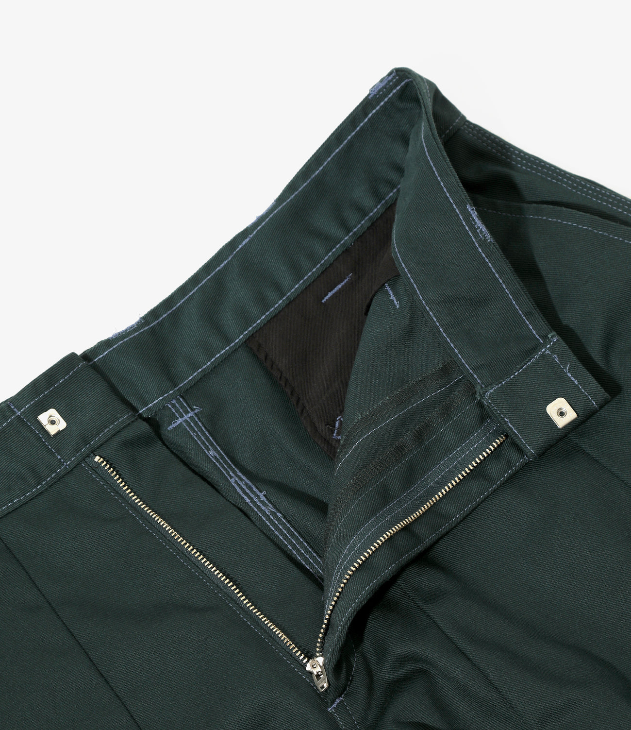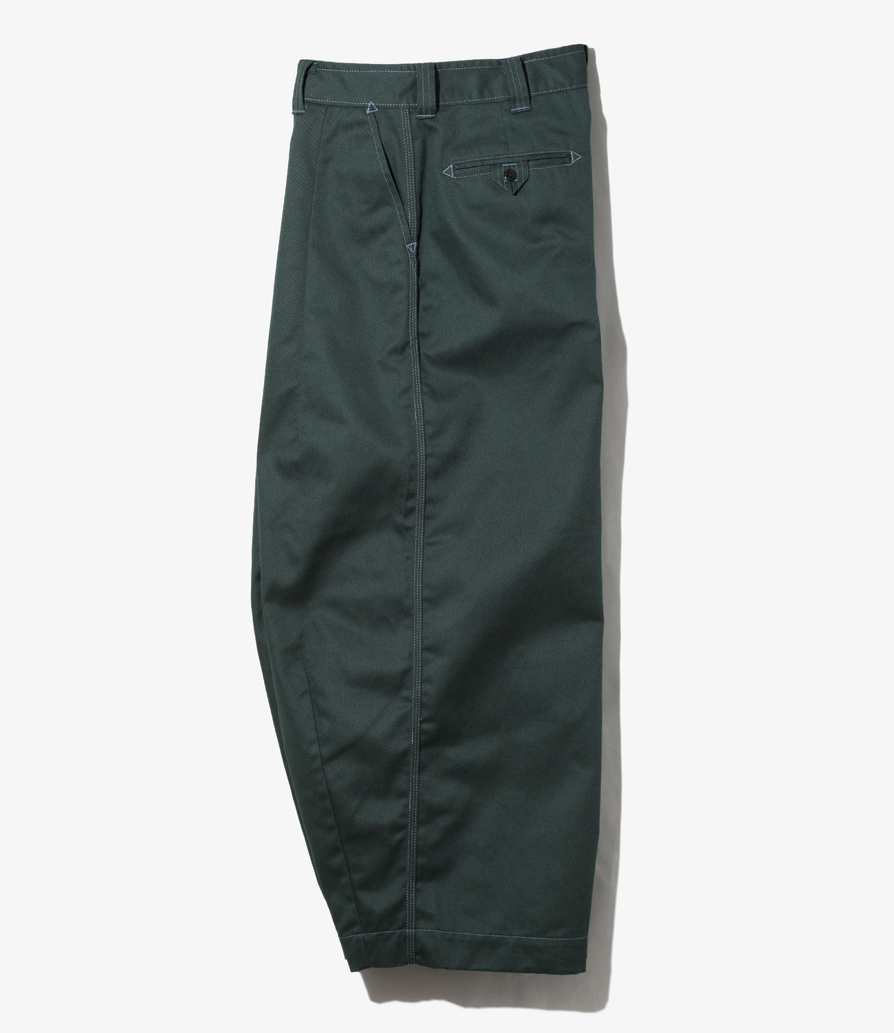 ウエストと裾のダーツ処理によってフロントが大きく膨らんだ、独特のシルエットが魅力の人気アイテムH.D. PANT。クラシックなワークウェアを思わせるツイル素材はハリがあり、H.D. PANT特有のシルエットを引き立てます。ウエストはフロントホックになっておりすっきりとしたクラシックな印象。カラーステッチやヒップ部分のパピヨンのタグなどがアクセントになっています。カラーはバーガンディ、グリーン、ブラックの3色展開。